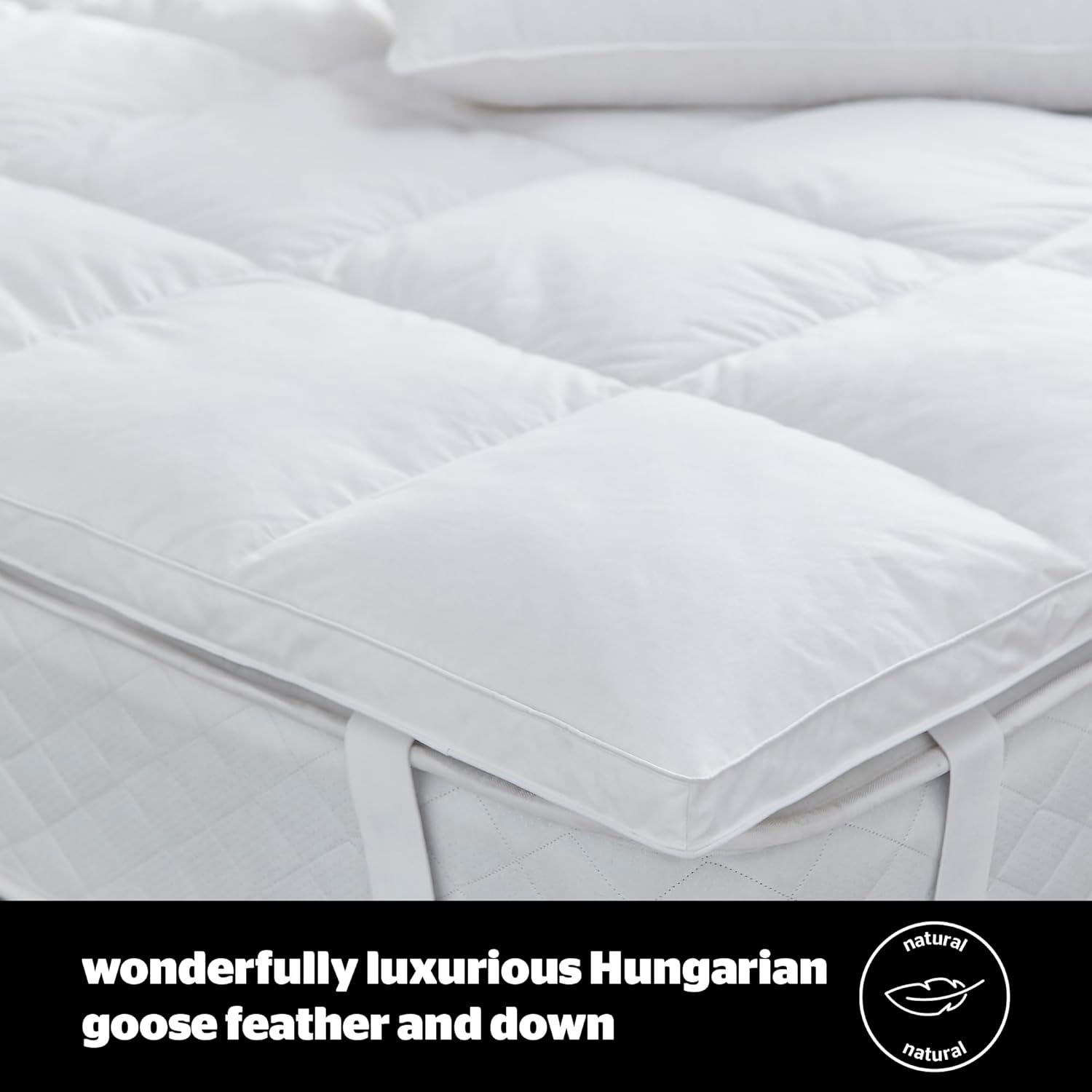 SOFTEST FILLING: Soft clusters of Hungarian Goose Feather and Down fill this topper, giving you the ultimate luxurious feeling with every night’s sleep.