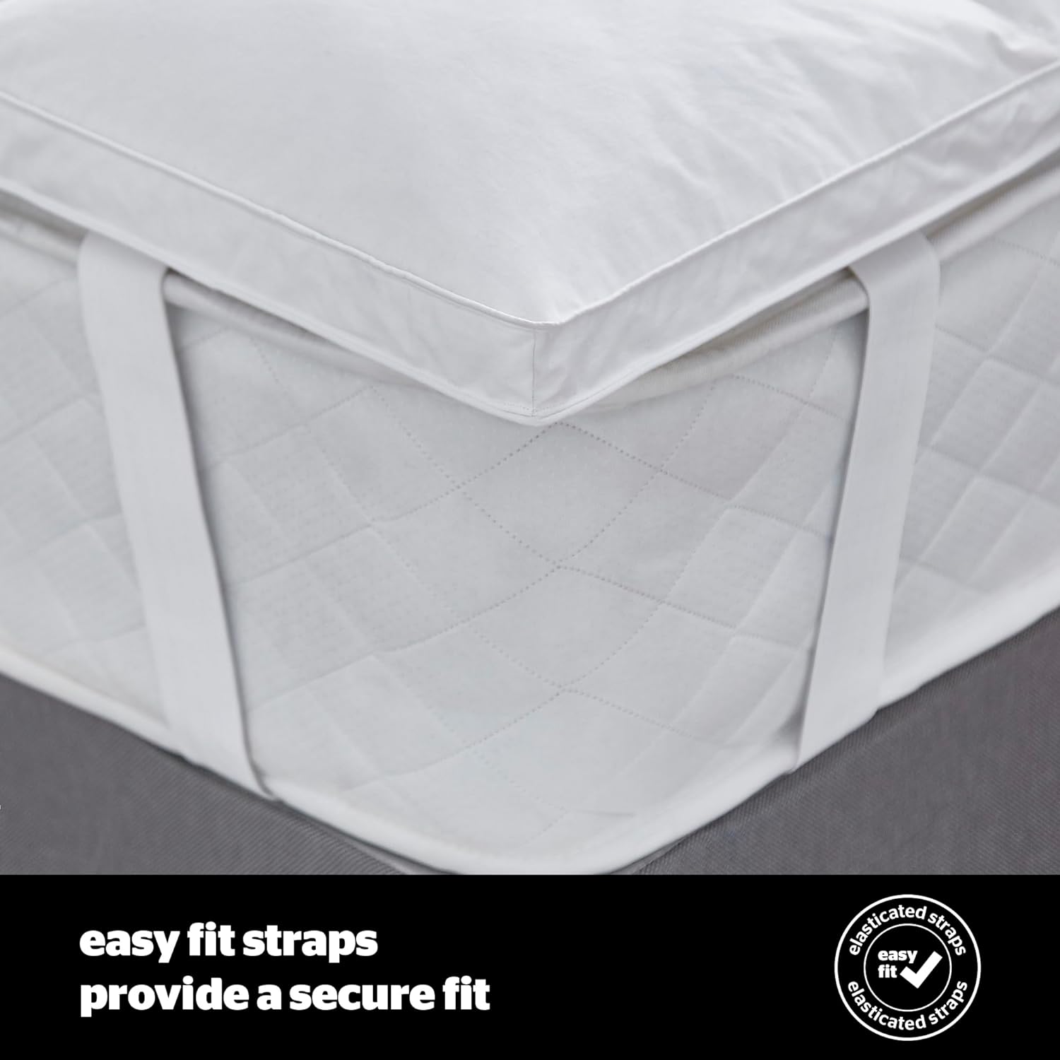 FIRMLY SECURE: Features easy fit elasticated straps to keep your topper in place as you move throughout the night.