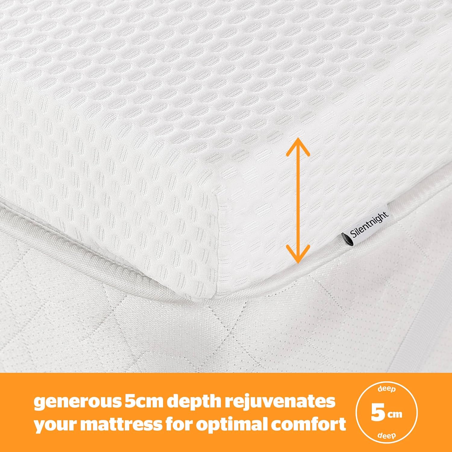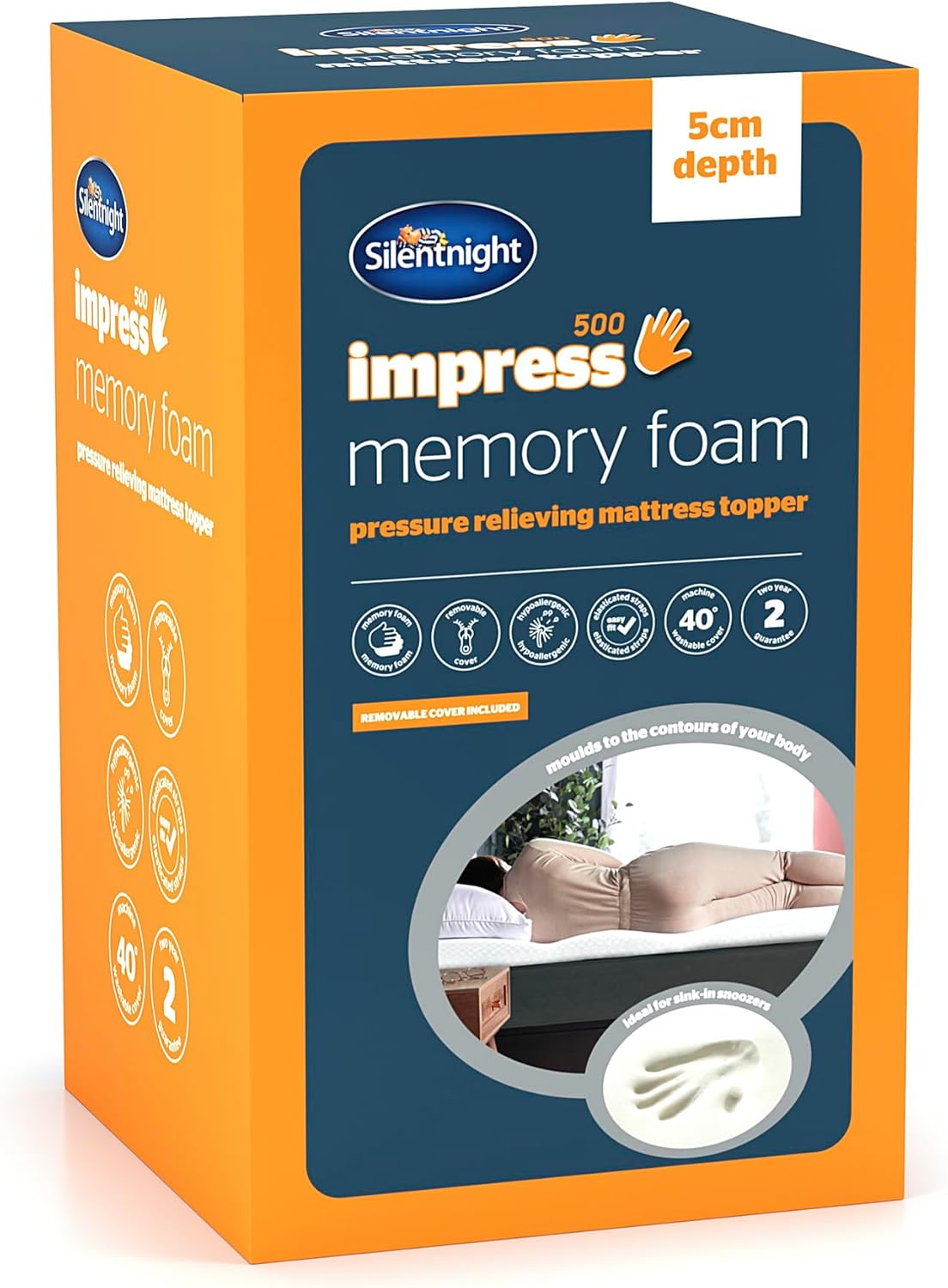 Silentnight Impress Memory Foam – 5cm Thick Luxury Orthopedic Mattress Topper for Back and Neck Pain – Removable Washable Cover – Small Double, White (549516GE)
