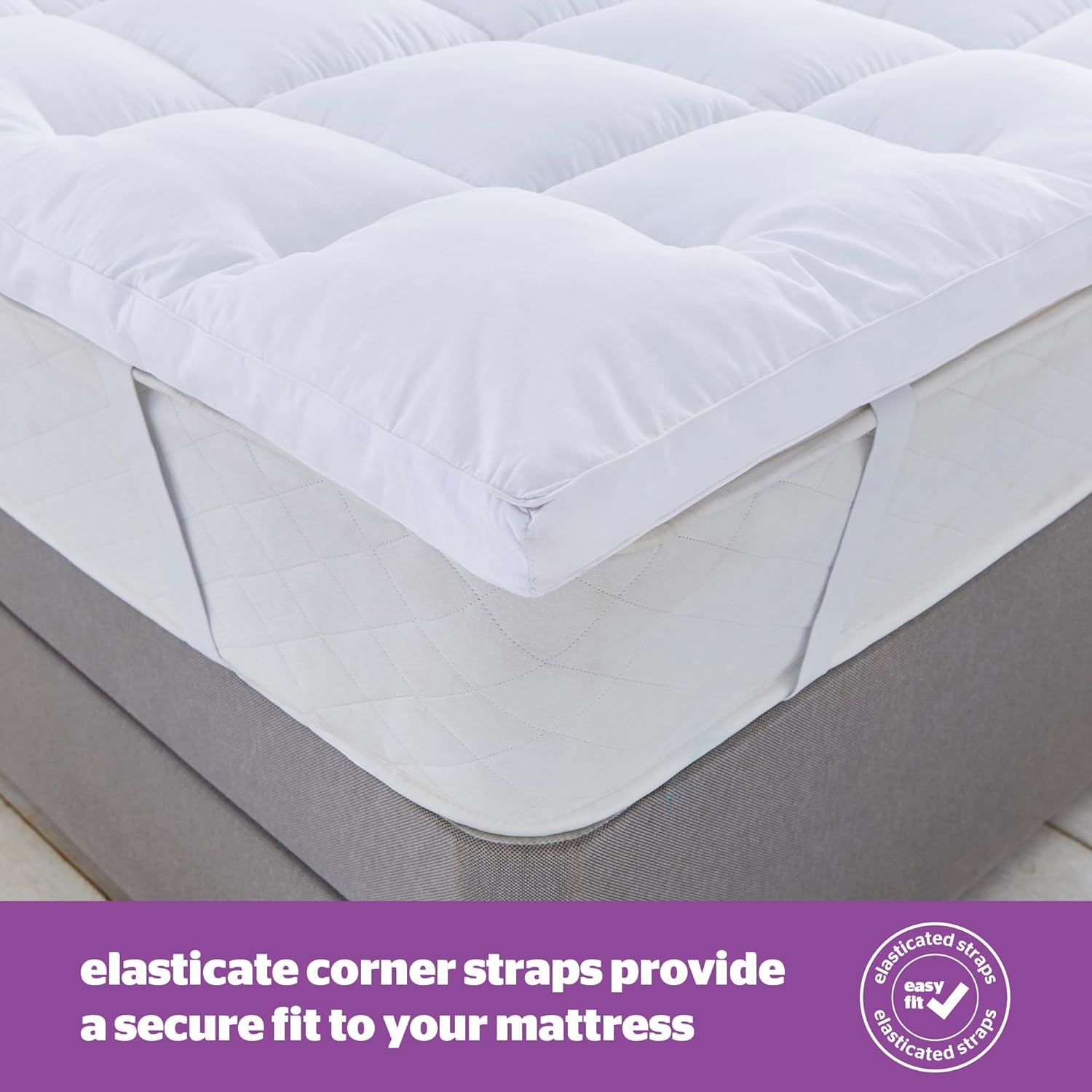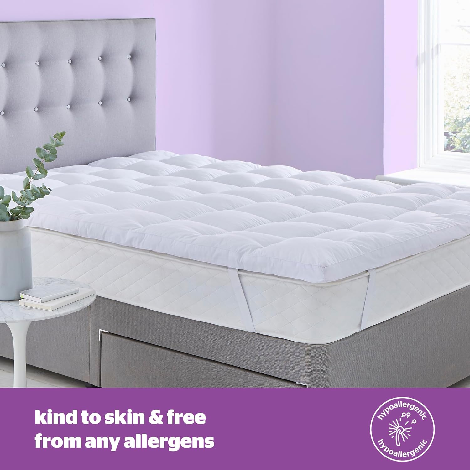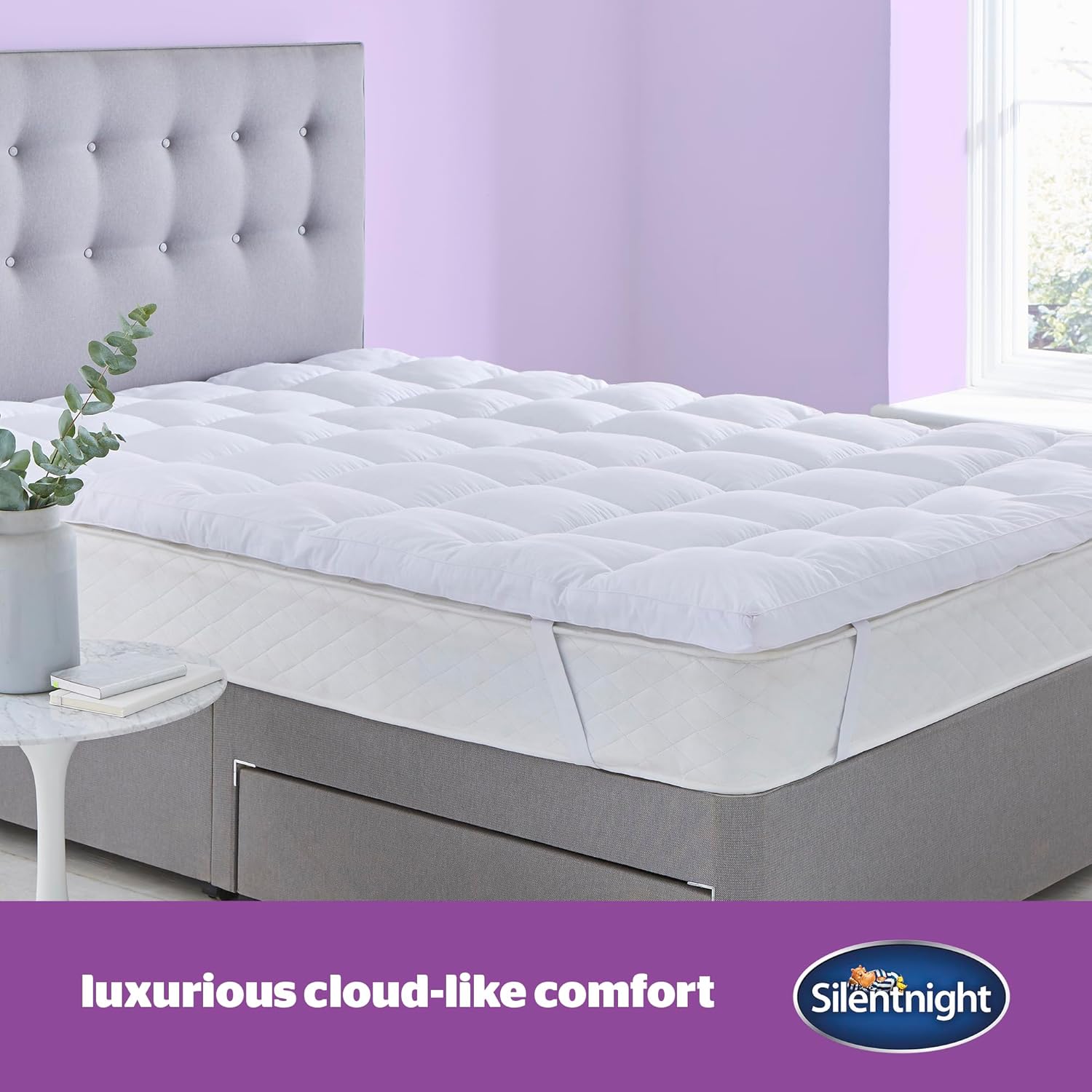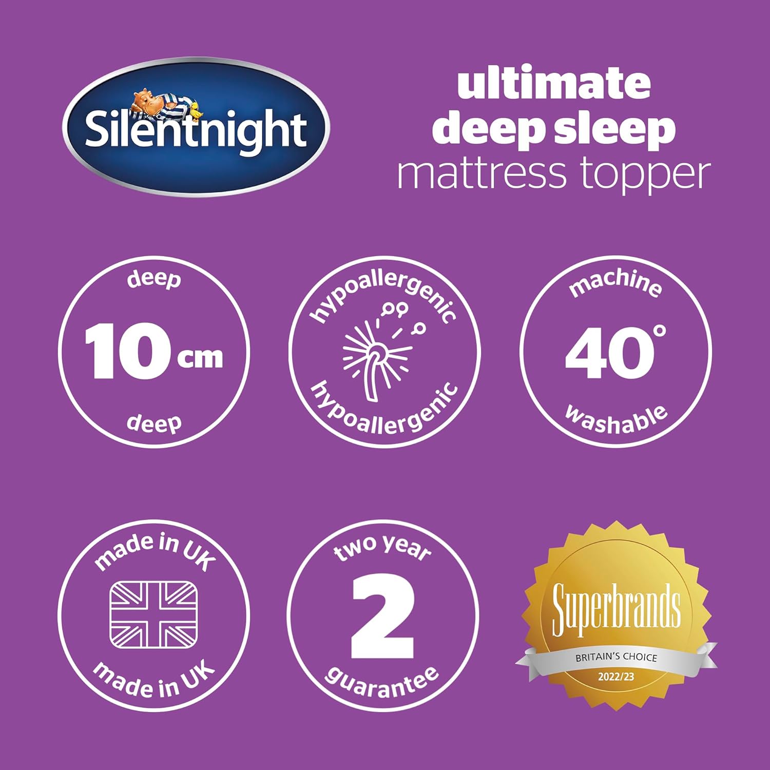 Silentnight Ultimate Deep Sleep 10cm Mattress Topper Double Bed – Luxury 4 Inch Thick Soft Mattress Enhancer Pad with Easy Fit Straps – Hypoallergenic and Machine Washable – Double – 190x135cm