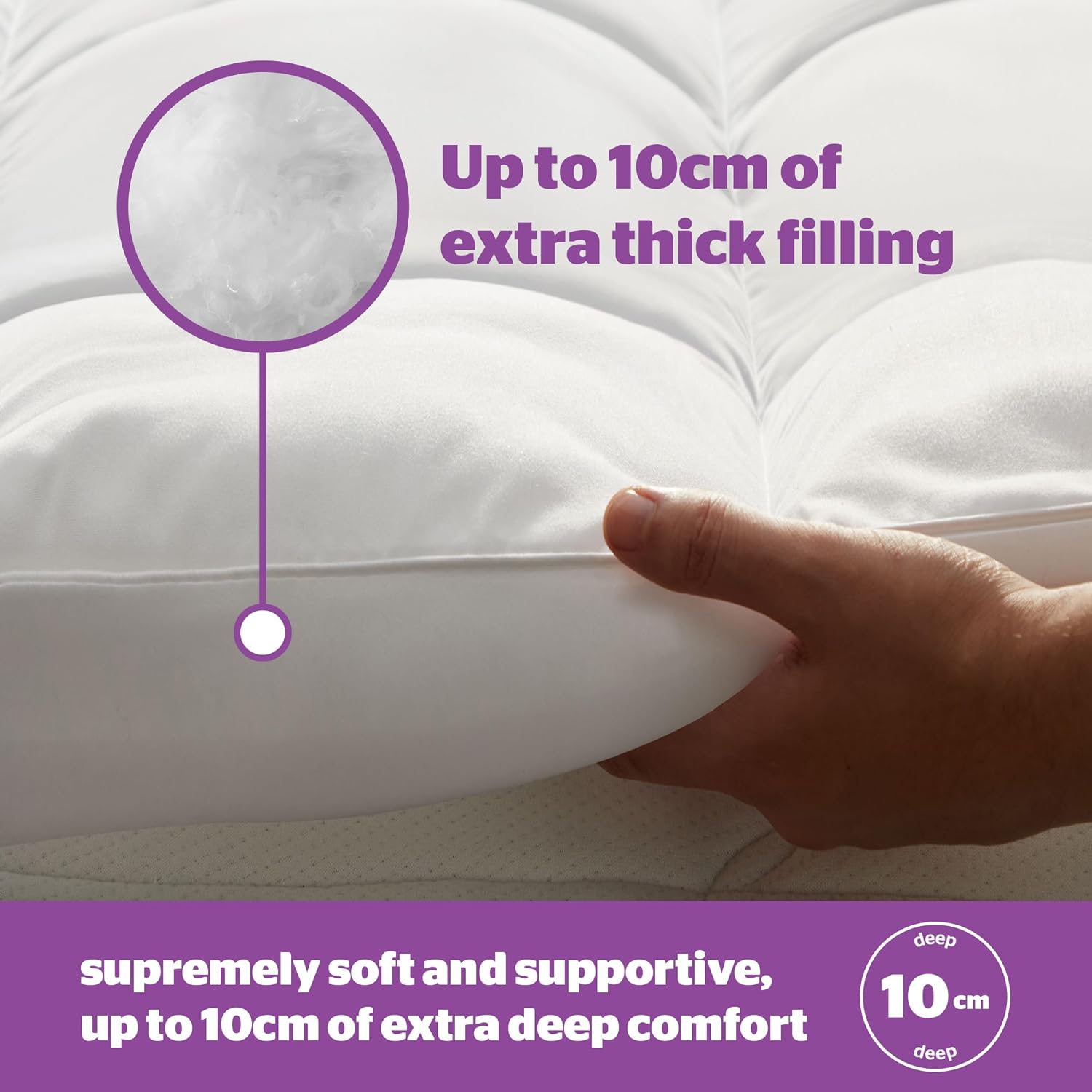 Generously filled for endless comfort, helping you to sleep more deeply every night. The 10cm depth offers cloud like comfort to rejuvenate your mattress.