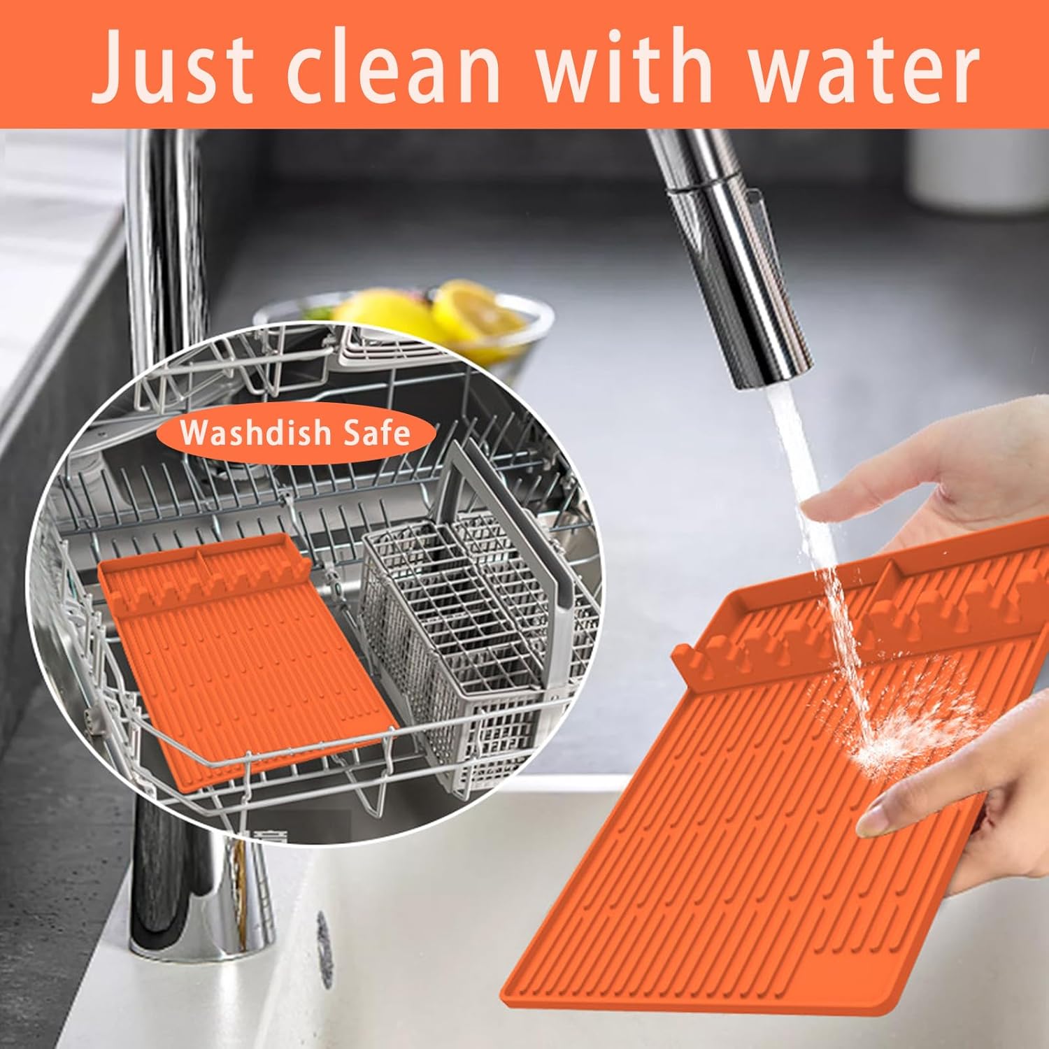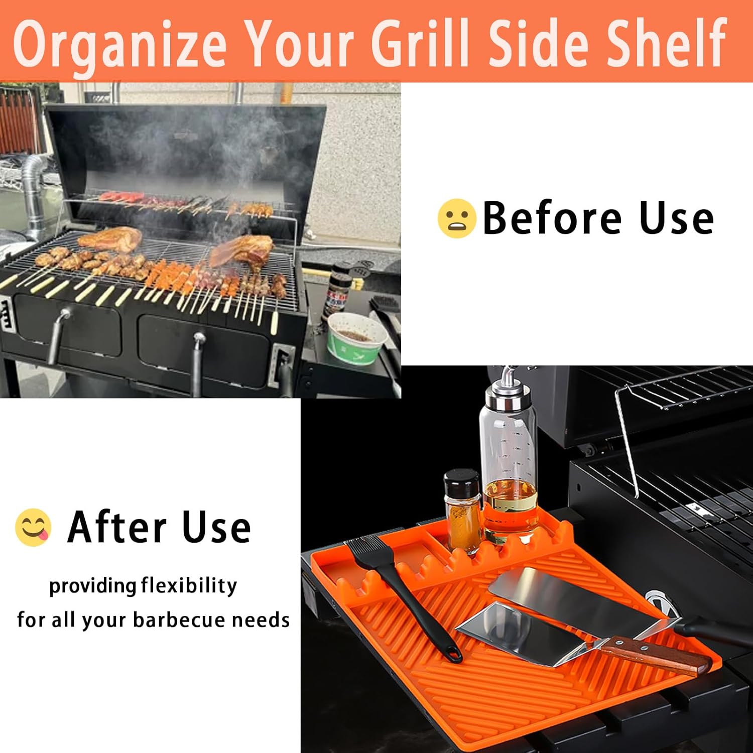 Kepp your safe:The HoneTeek Silicone Grill Side Shelf Mat is not just limited to holding utensils – it is also heat resistant, making it the perfect landing spot for your hot pots and pans. Say goodbye to unsightly scorch marks on your countertops and tables. Additionally, the mat’s non-toxic and food-safe material ensures your family’s safety during meal preparation.Easy to clean:Cleaning is a breeze with this mat. Simply hand wash with soap and water or toss it into the dishwasher for a quick and convenient clean. No more tedious scrubbing or soaking required.