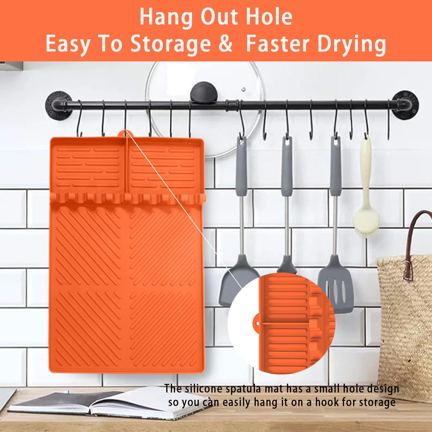 Keeps everything organized:Measuring a generous 16×11.5 inches, this large mat features 8 slots, offering ample space to hold your spoons, spatulas, ladles, brushes, tongs, or forks. No more searching through cluttered drawers or dealing with utensils rolling off the counter – this mat keeps everything organized and within easy reach.