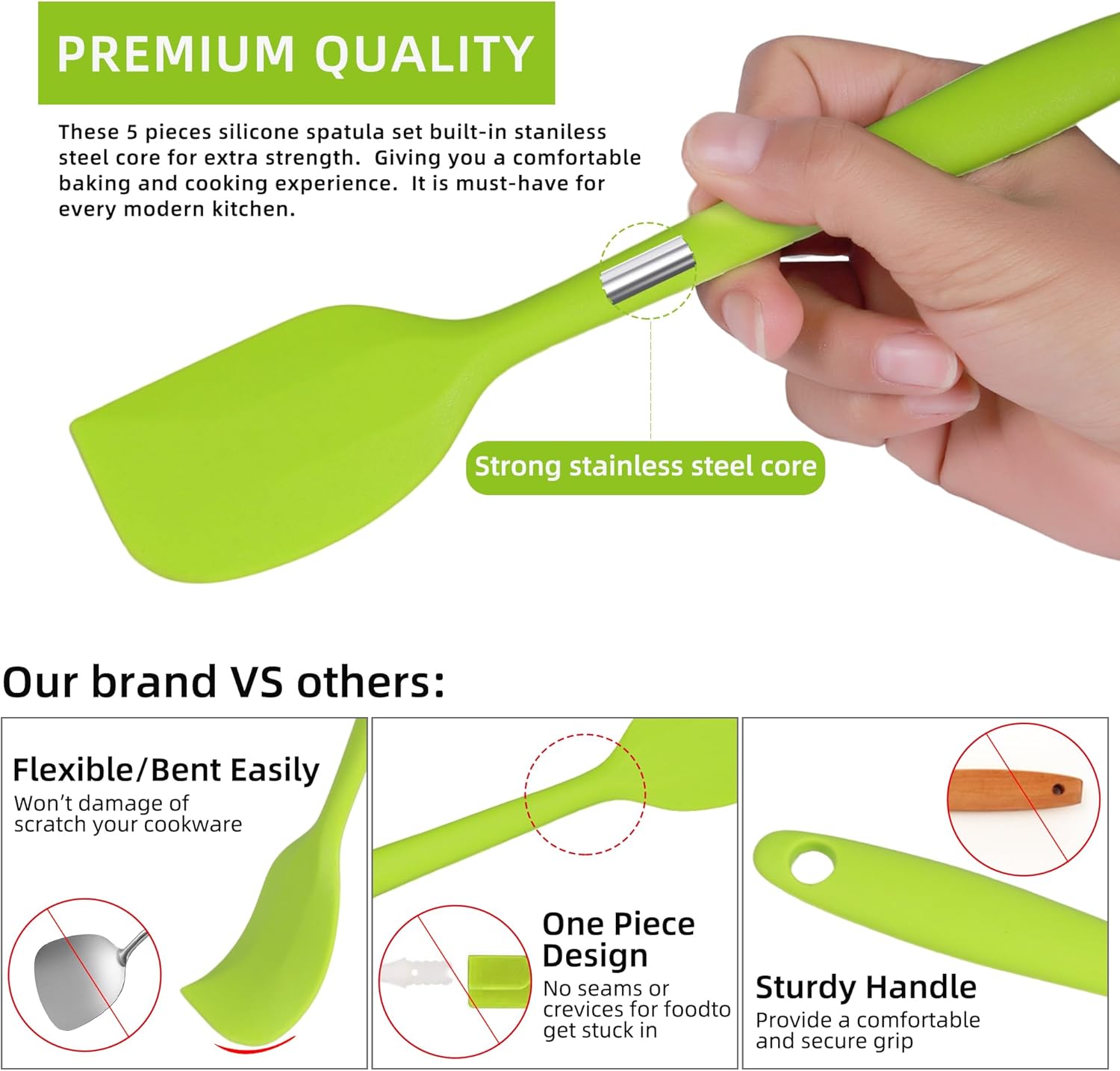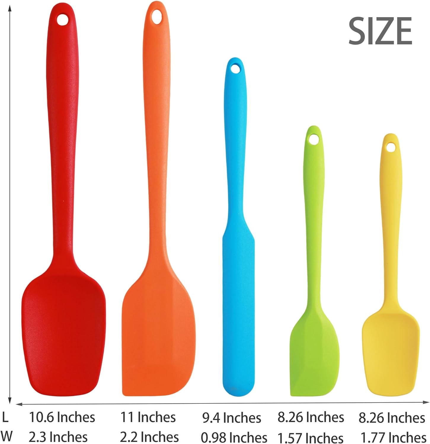 Silicone Spatula, 5 PCS High Heat Resistant Non-Stick Rubber Spatulas Set, Food Grade Baking Spatulas Kitchen Utensils for Baking, Cooking and Mixing