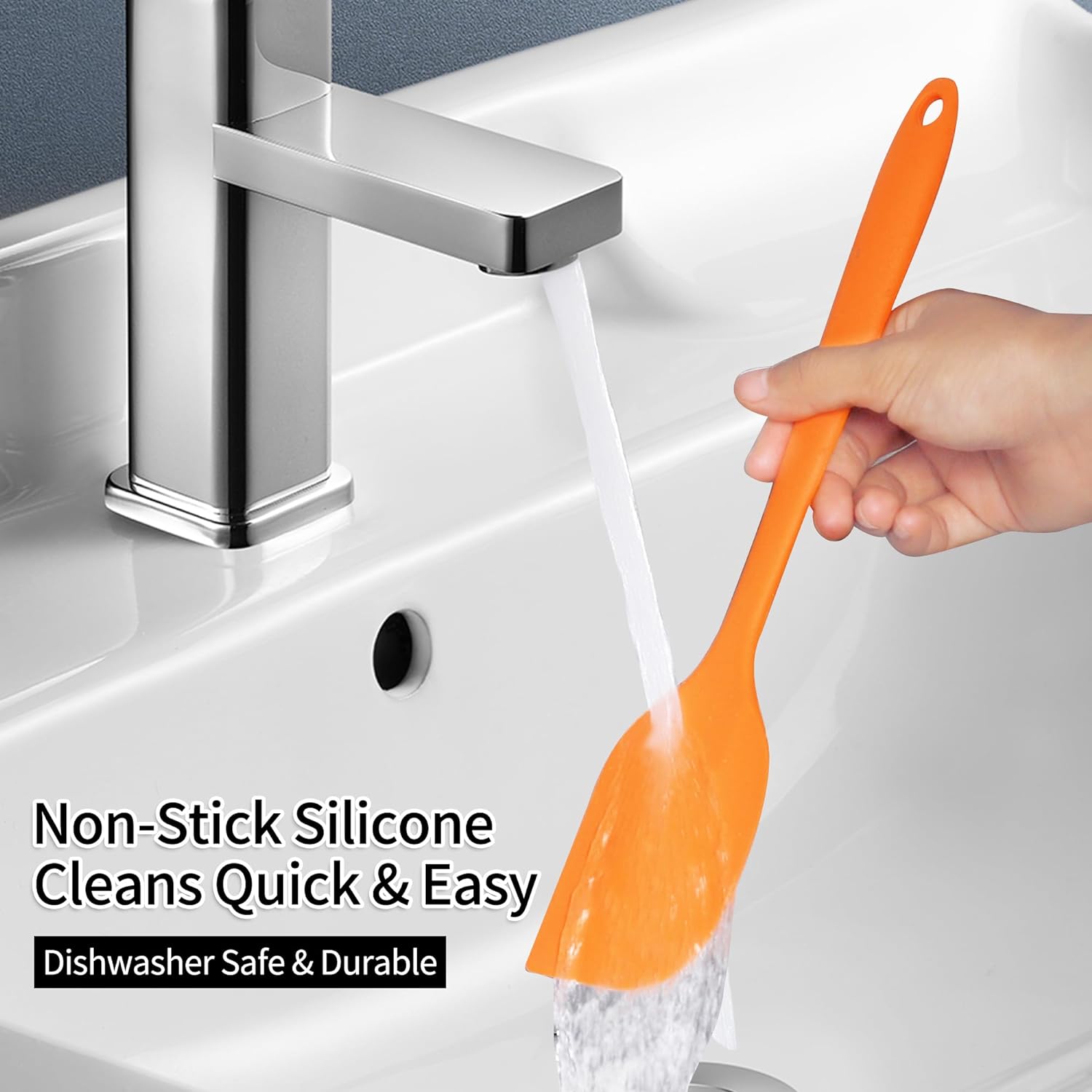 【Easy to Clean】The cooking silicone spatulas design by seamless one-piece to ensure no residue. This design can be easy to clean. The silicone spatula can be cleaned by hand or in the dishwasher. It also can be hung up after cleaning for quick drying.