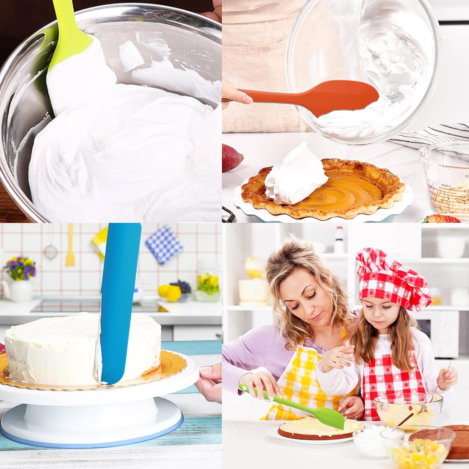 【Food Grade Safe Material】This silicone spatulas set made in 100% food grade silicone material and BPA free which is never release any harmful elements. Non-toxic, lead free Odourless. Make your cooking always safe and healthy.