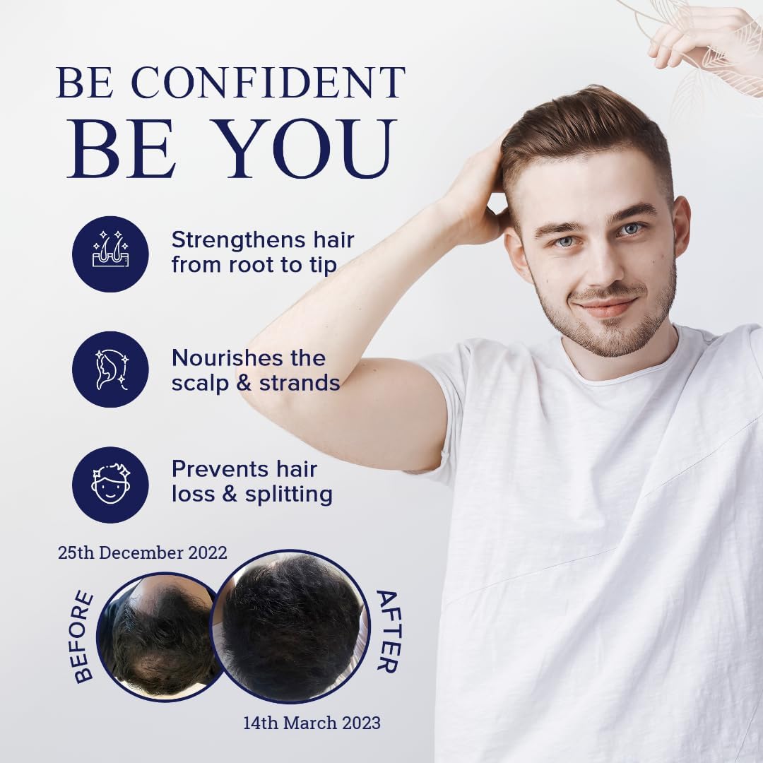 Promotes Accelerated Hair Growth & Vitality – Harnesses the power of 25 active ingredients & 15 botanical oils, including Almond & Jojoba oil for hair. Together, they enable our 2-in-1 hair oil & hair serum to supply vital nutrients, promoting the health & fullness of your hair.
