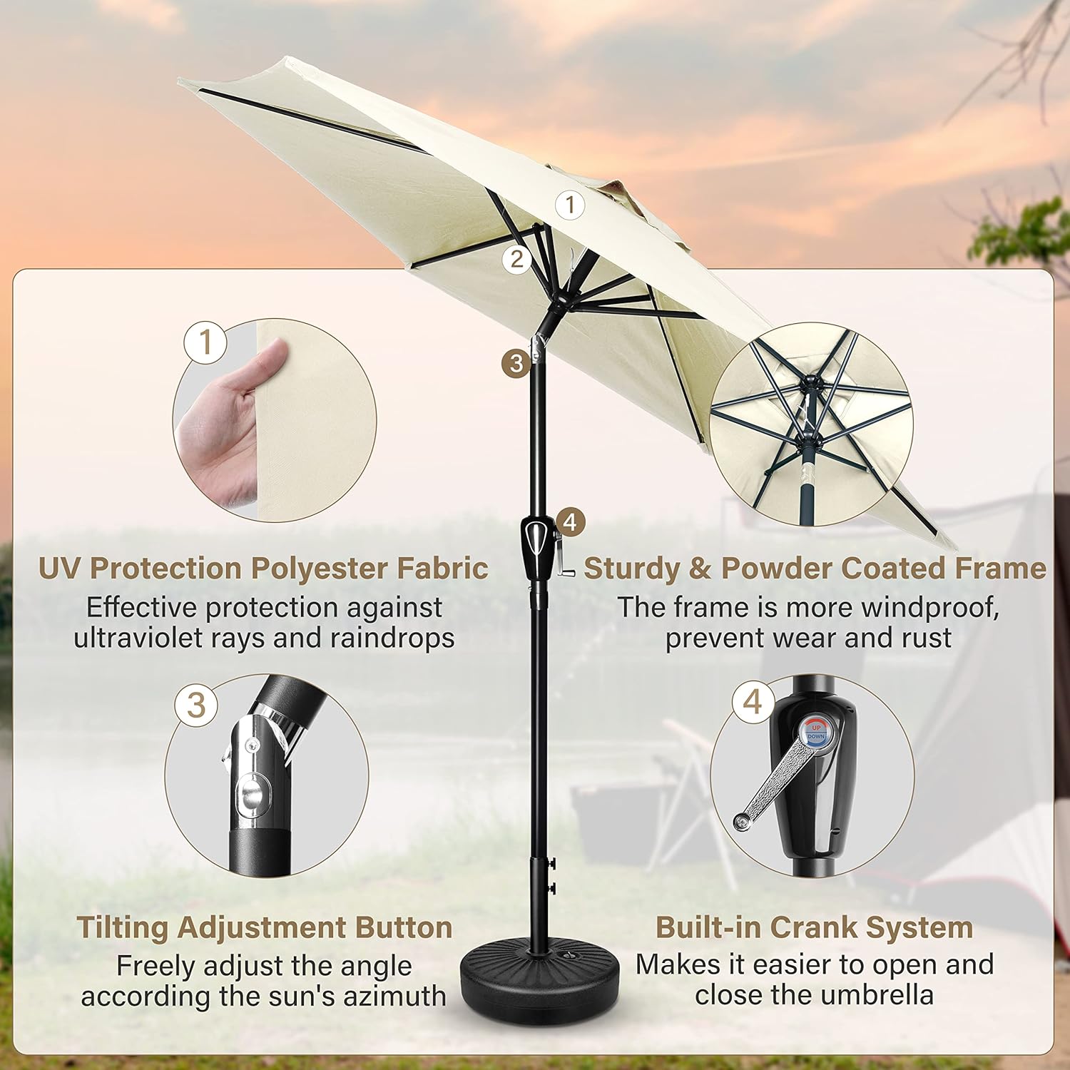 Simple Deluxe 2.74M Outdoor Market Table Patio Umbrella with Button Tilt, Crank and 8 Sturdy Ribs for Garden, Deck, Lawn, Backyard & Pool, Beige