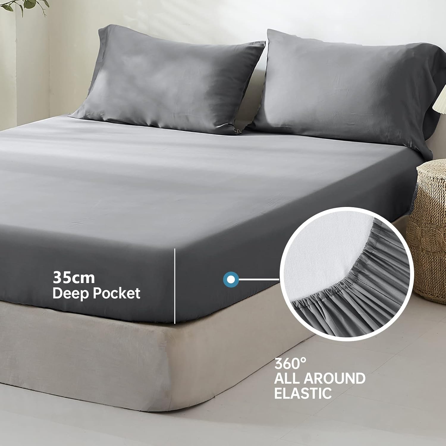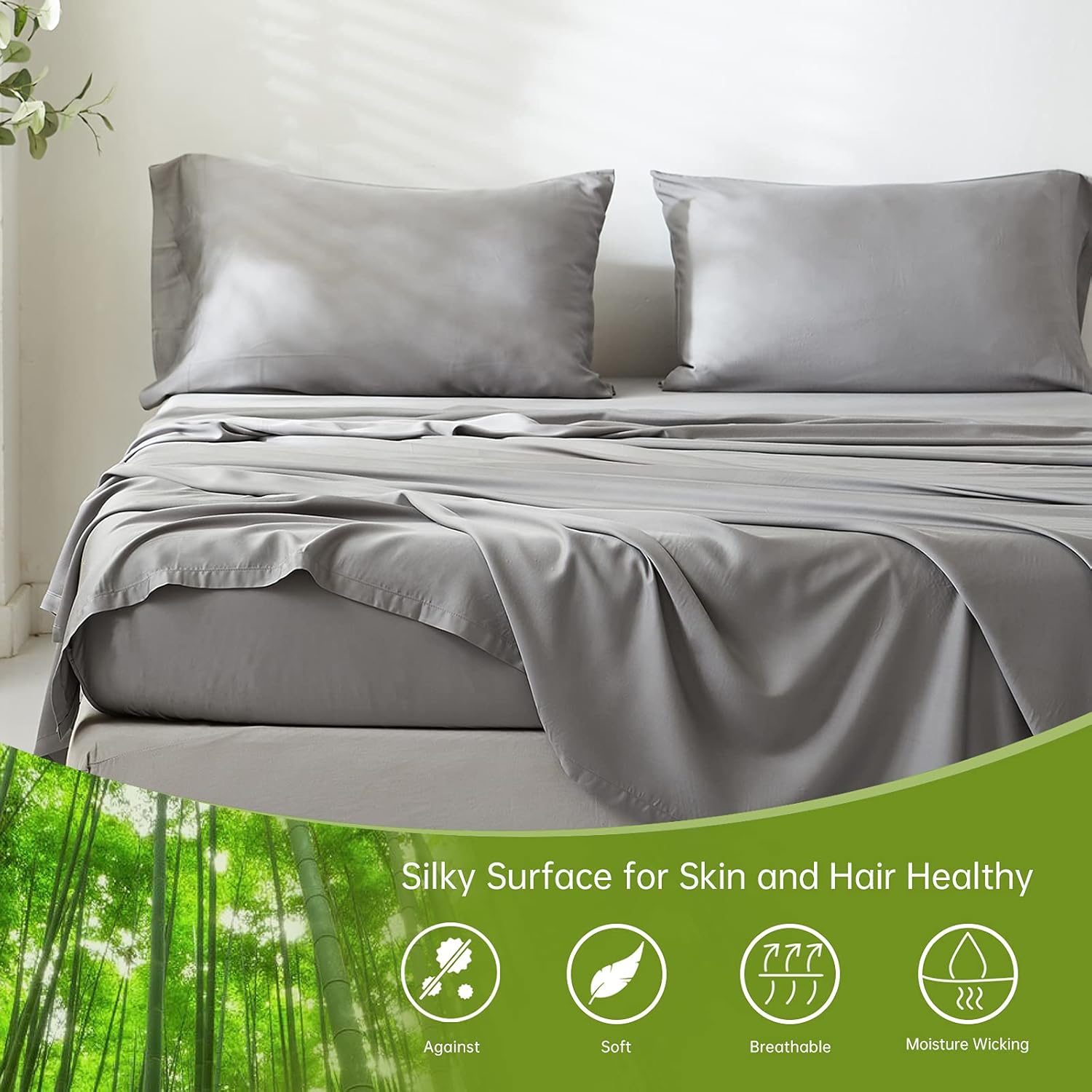 Simple&Opulence 100% Bamboo Viscose Fitted Sheet, Cooling and Luxurious Silky Hypoallergenic Bed Sheet with Extra Deep Pocket (Double, Bamboo Gray)