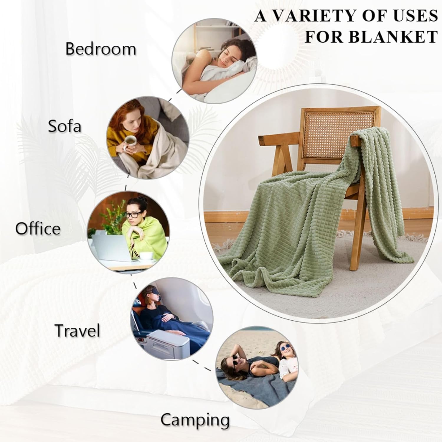 Simple&Opulence Microfiber Throw Blanket Grid Design,130cm x 170cm,Super Soft Fluffy Light Weight Solid Bed Blanket for Couch, Sofa,Bedroom Accessories(Sage Green)