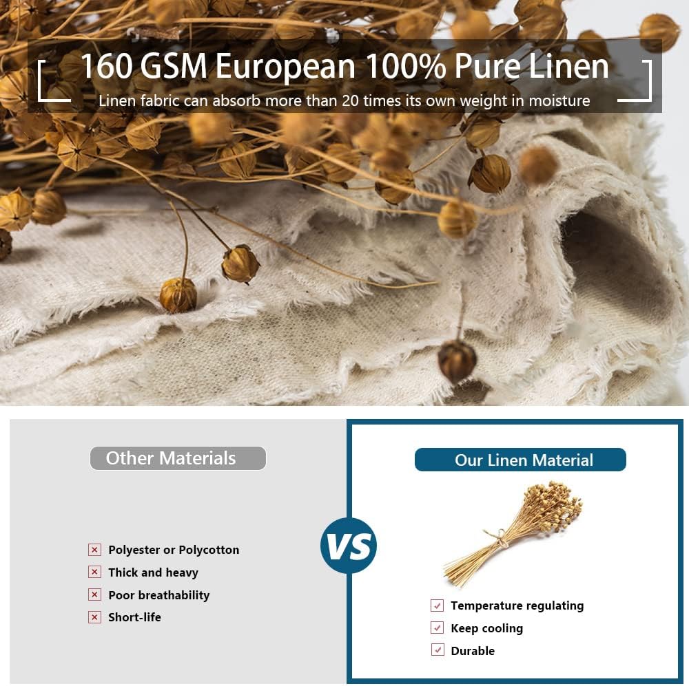 【Material Advantages】Linen is one of the fabrics for human health. Linen has nice temperature adjustment and breathability to help you fall asleep faster and sleep sounder. The linen keeps you warm on chilly nights and cool in summer. The unique material is especially suitable for hot humid climatic regions. After washing, the natural characteristics of the linen can still be preserved, and it will become more skin-friendly. An “investment piece” for your bedroom.
