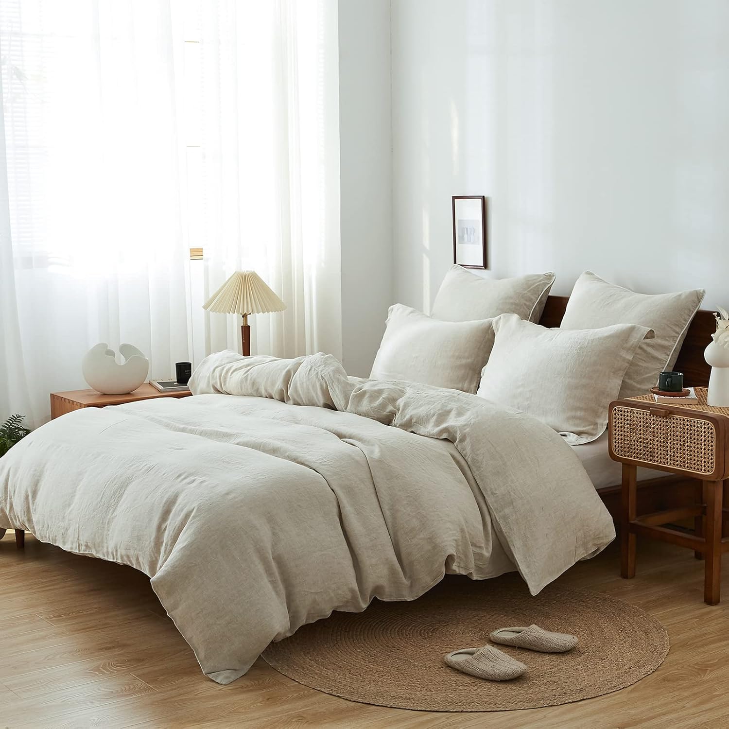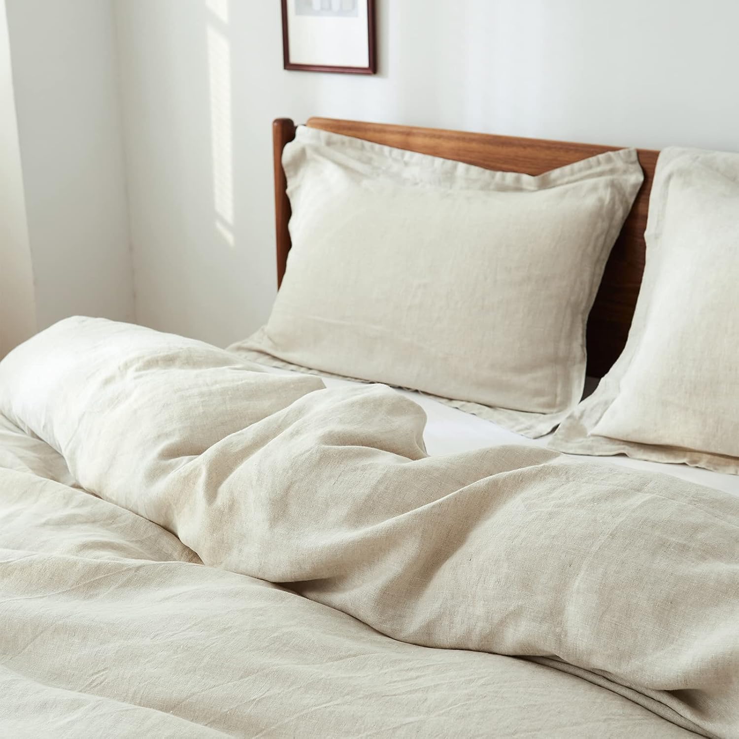 【Design & Gift】The linen product uses a solid color design, looks natural and concise, It will work fabulously with any interior decor, suitable for different styles of bedroom. Our linen bedding is a good choice for your friends and family. (Birthday/Mother’s Day/Christmas/Wedding gift/Housewarming gift …)Matching Fitted Sheet & Pillow covers: If you need extra fitted sheet, pls search: B074FR81HP; Extra pillow cases, pls search: B07J313F9B.