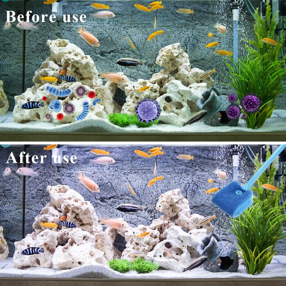 🐟 Double-sided sponge brush: Fish tank sponge cleaner is made of high-quality sponge, which can quickly and effectively remove algae and keep your aquarium residents clean.