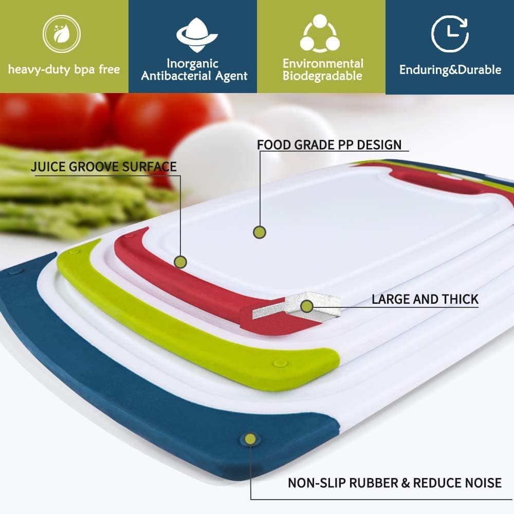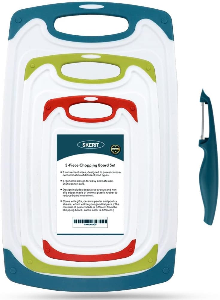 SKERITO Chopping Board Set, BPA Free Plastic Kitchen Cutting Boards with Non-Slip Feet and Deep Drip Juice Groove