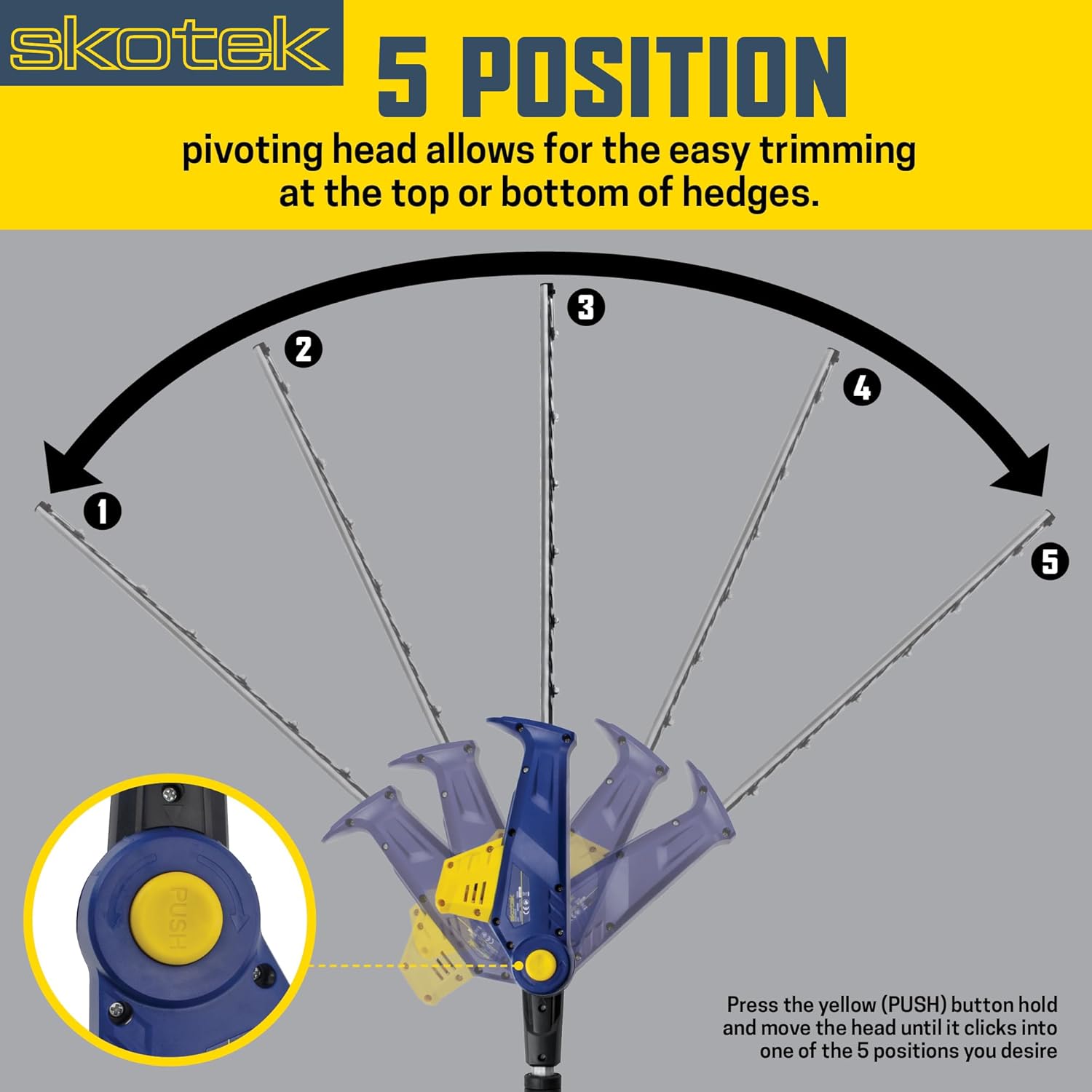 High Performance: The Skotek pole hedge trimmer has a high performance 20V battery which allows you to tackle any hedge with ease, without any struggling or straining. Powered by a Lithium-ion battery, it delivers up to 40 minutes run-time from one single charge. Charge time 3-5 hrs (A great alternative to a petrol hedge trimmers).