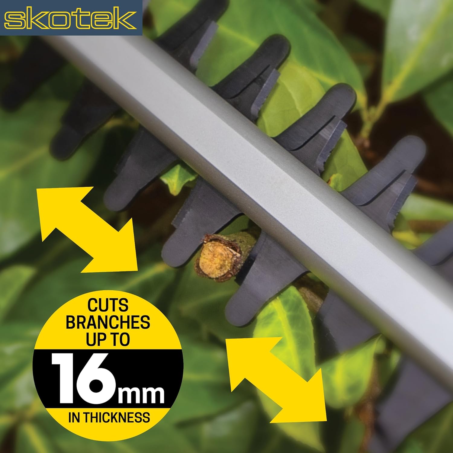 Complete Package: Skotek cordless hedge trimmer comes with 1x battery, shoulder strap and charger. This Skotek cordless hedge trimmers with battery and charger ensures you have everything you need to start trimming your garden immediately and we offer a 2 year guarantee for your added peace of mind.