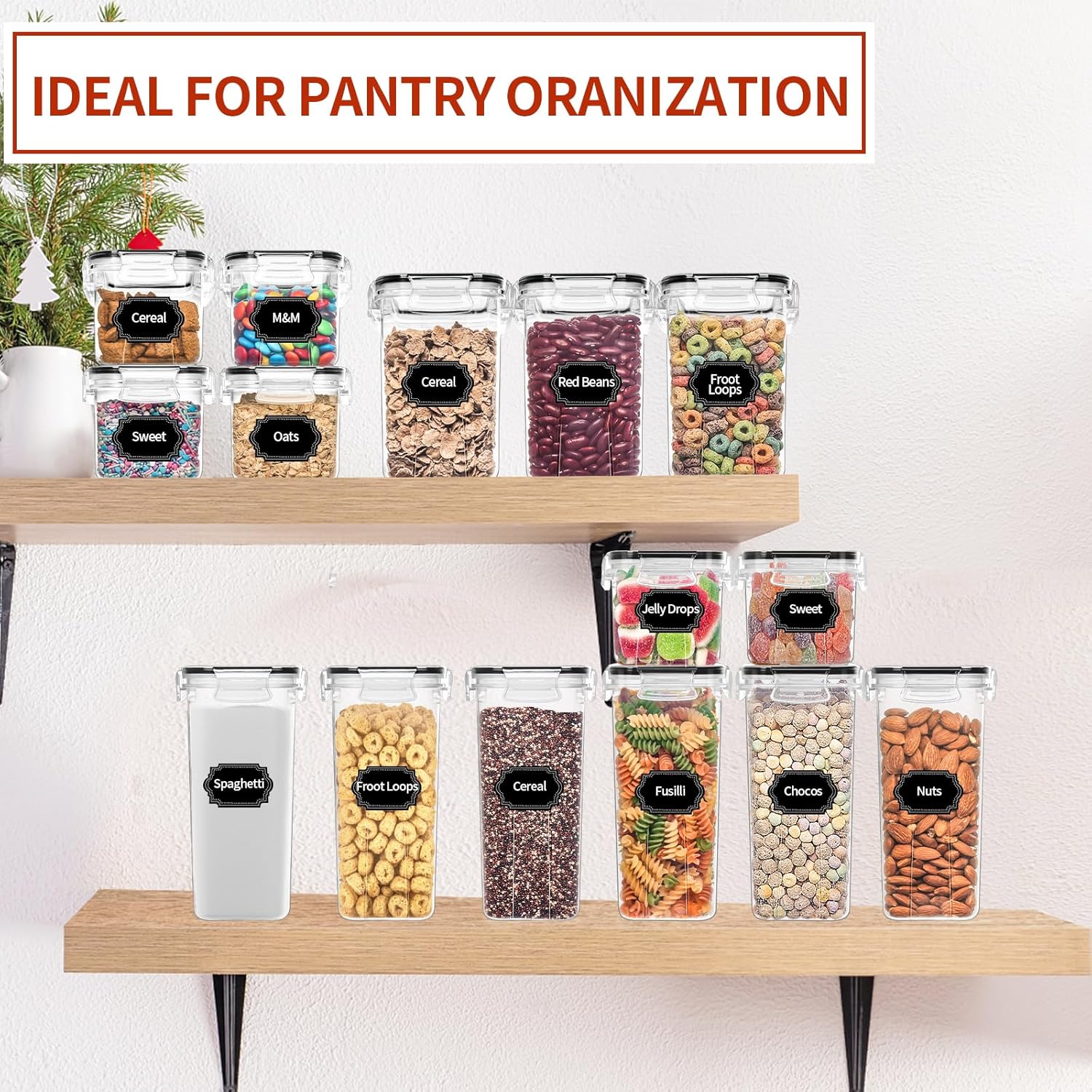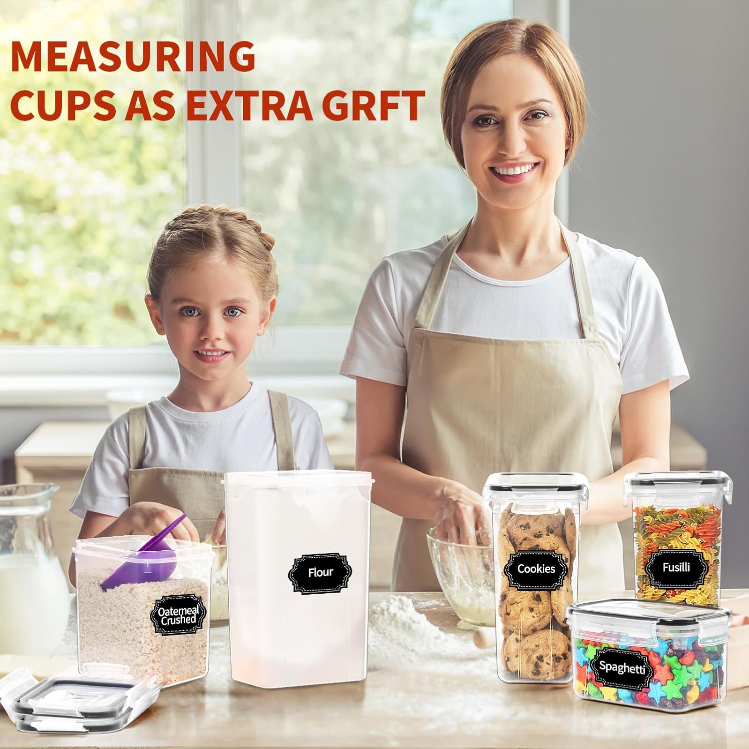 Skroam 16 Pack Airtight Food Storage Containers for Kitchen Pantry Organization and Storage, BPA Free Plastic Canister Set with Lids, Cereal, Flour & Sugar Containers- Labels & Marker