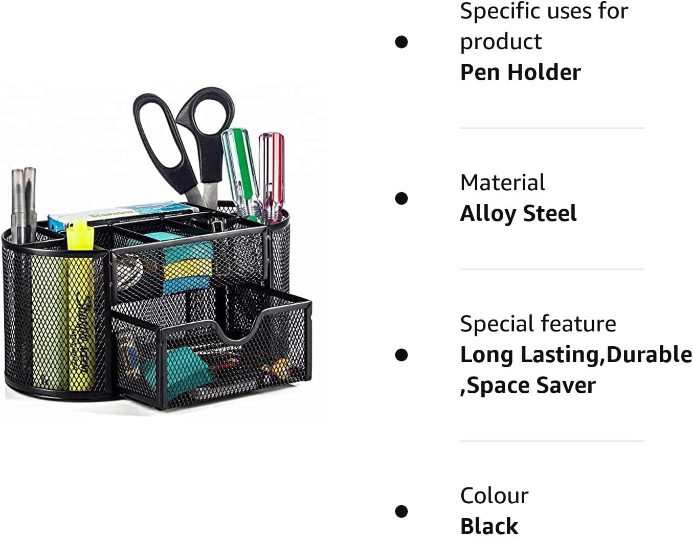 SLEEC Mesh Desk Office Organizer, Multifunction Pen Holder with Drawer Stationery Storage Desktop Black (BLACK)