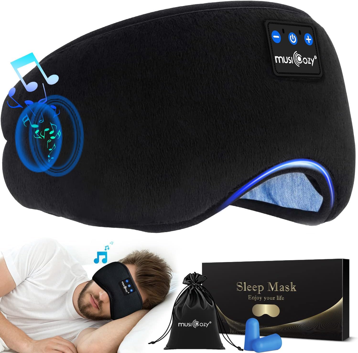 🎁✨【𝐁𝐞𝐬𝐭 𝐆𝐢𝐟𝐭𝐬 & 𝟐 𝐘𝐞𝐚𝐫𝐬 𝐖𝐨𝐫𝐫𝐲-𝐅𝐫𝐞𝐞 𝐒𝐞𝐫𝐯𝐢𝐜𝐞】Achieve your best sleep with MUSICOZY sleep headphones with eye cover, which creates a private space for you to not only sleep better but also enjoy your music time. MUSICOZY offers a satisfactory warranty to solve your problem until you are satisfied. Unique gift for men, women, teenagers, girls, boyfriend, best friend, friend, husband, ladies, teachers, travelers, to give as a mother’s day, father’s day, birthday gift.