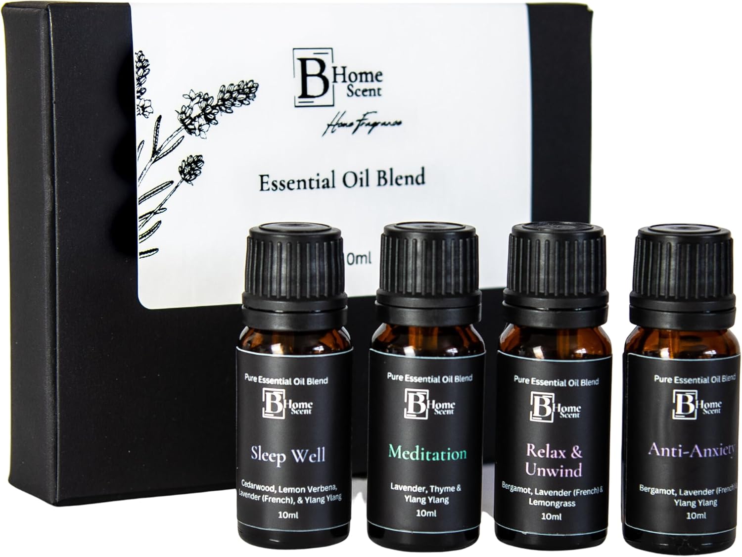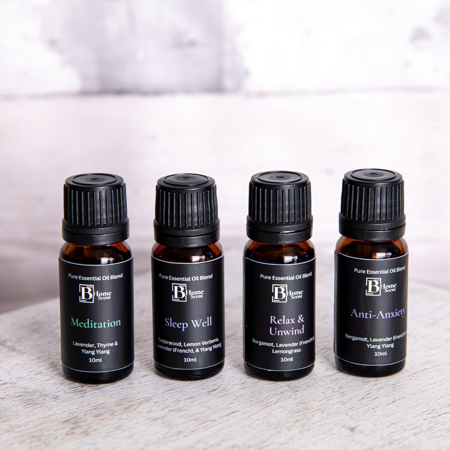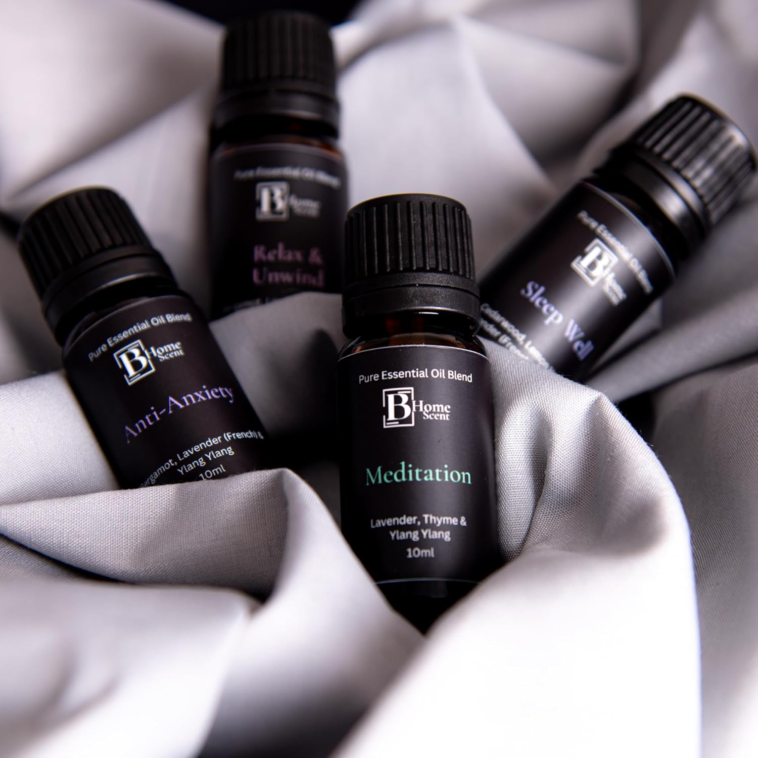 SLEEP WELL Essential Oil Blend – helps promote sleep, reduces stress, and eases anxiety. RELAX & UNWIND Essential Oil Blend – calming, reduces stress, uplifting. MEDITATION Essential Oil Blend – If you struggle to switch off your active mind and enter a meditative state, then our Meditation Pure Essential Oil Blend can be beneficial. ANTI – ANXIETY Essential Oil Blend – the perfect remedy for those seeking calmness and relaxation in the midst of life’s chaos.