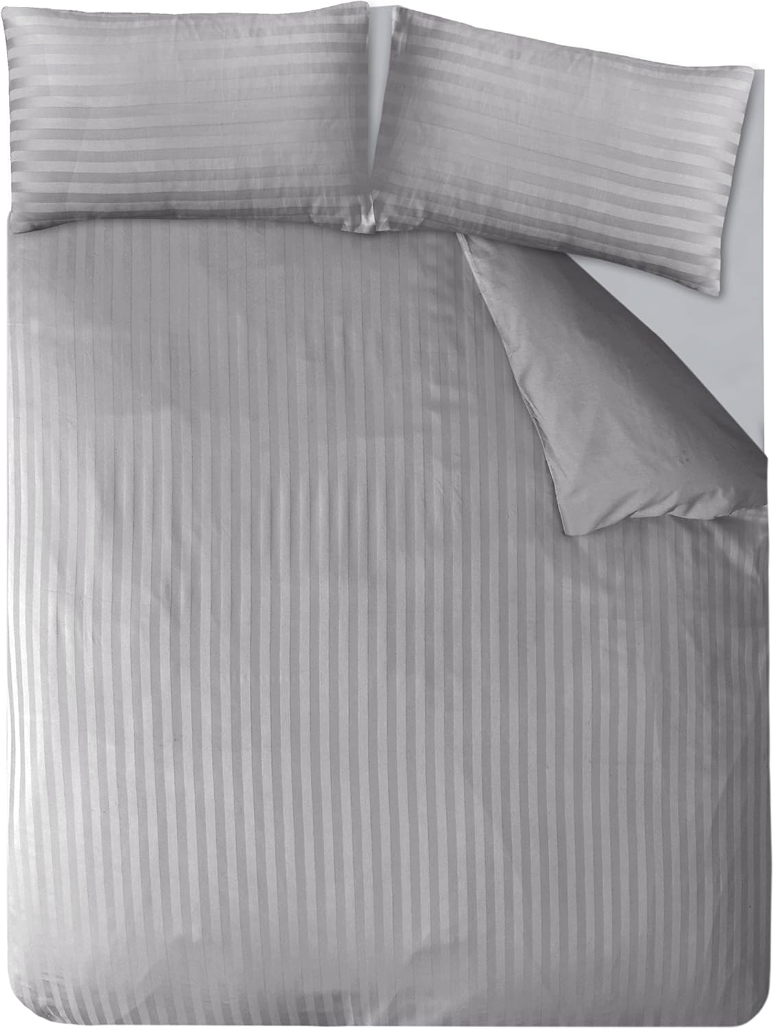 Sleepdown Premium Hotel Quality Satin Stripe Duvet Cover Set with Pillowcases Quilt Bedding Soft Easy Care Luxury Bed Linen – Grey – King (230cm x 220cm)