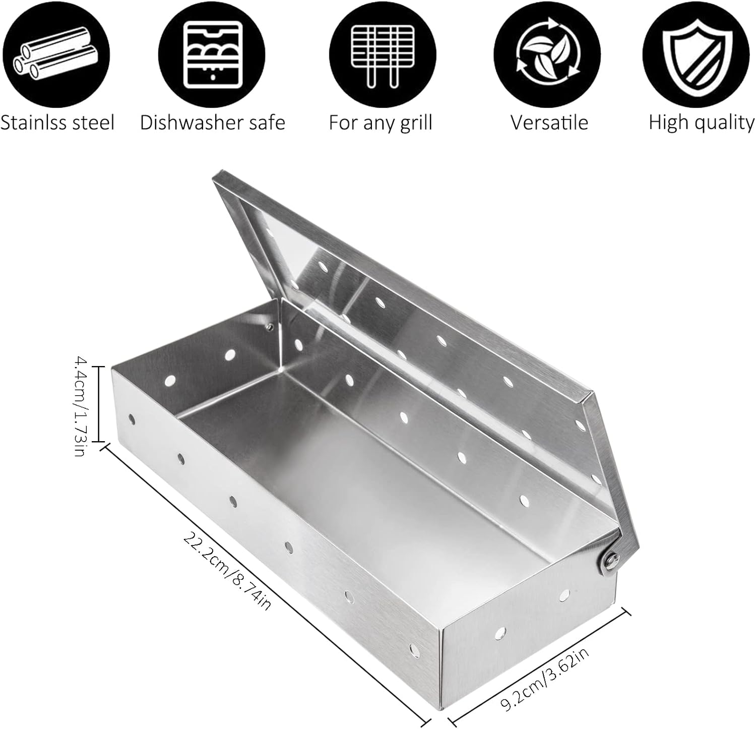 Smoker Box Stainless Steel Wood Chips Box Portable Smoker Grill Accessories for Gas Charcoal Grill Barbecue BBQ Meat Add Smoky Flavours