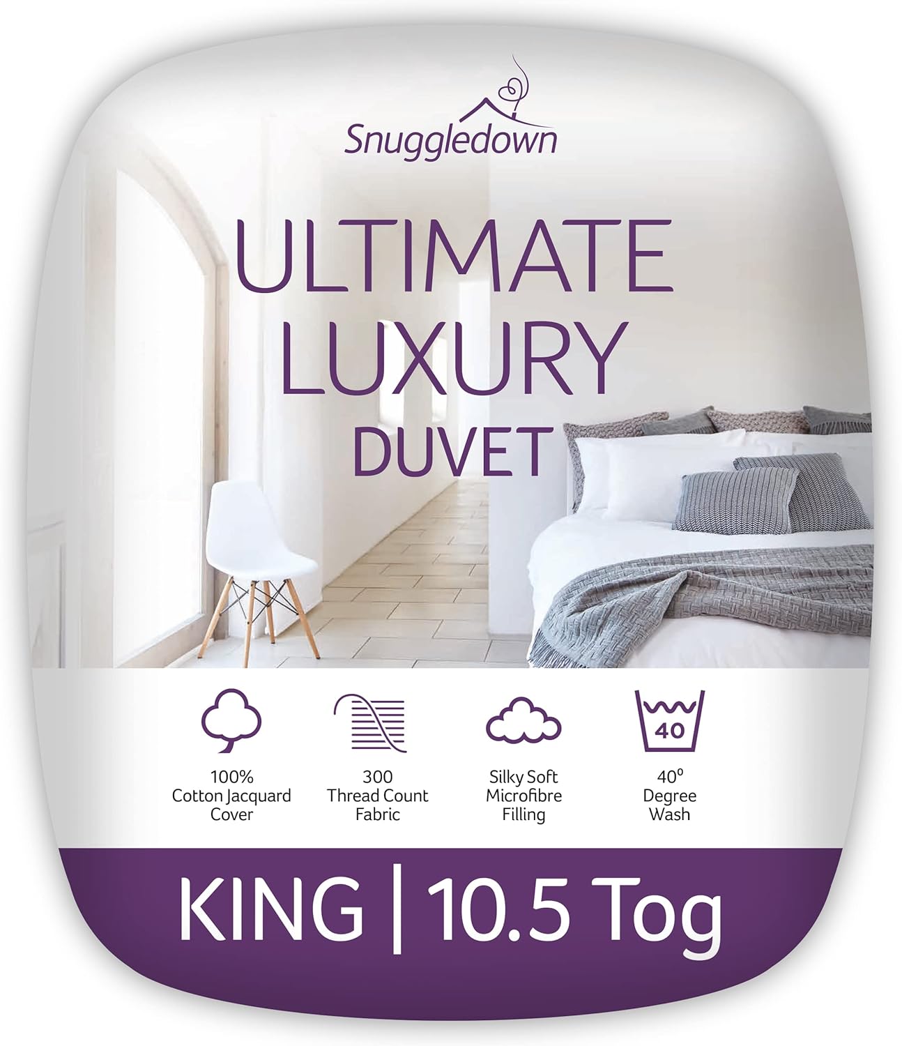 Snuggledown Ultimate Luxury Hotel King Size Duvet – 10.5 Tog All Year Round Premium Quilt for Summer & Winter – Soft Jacquard Cotton Cover, Hypoallergenic, Machine Washable, Size (225cm x 220cm)