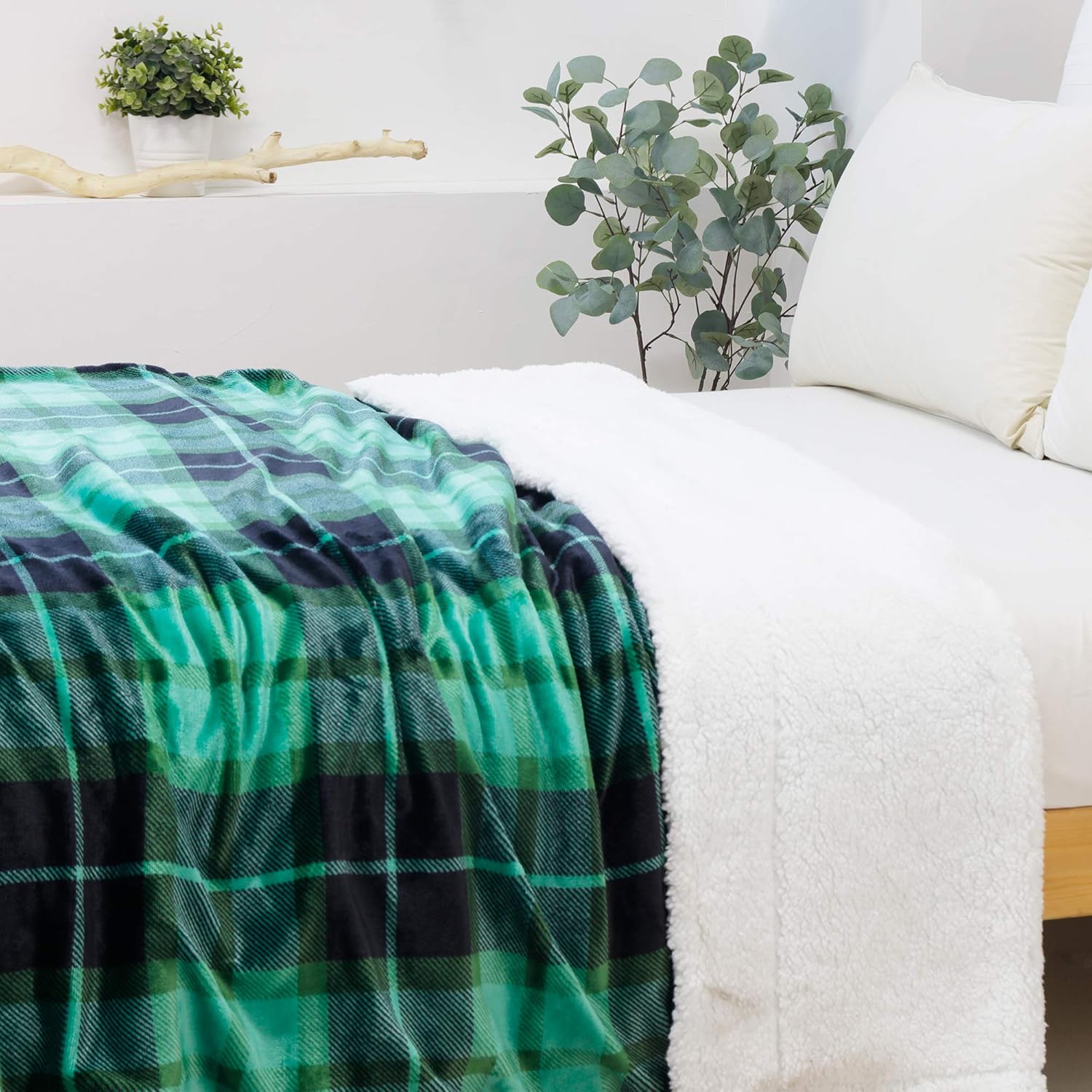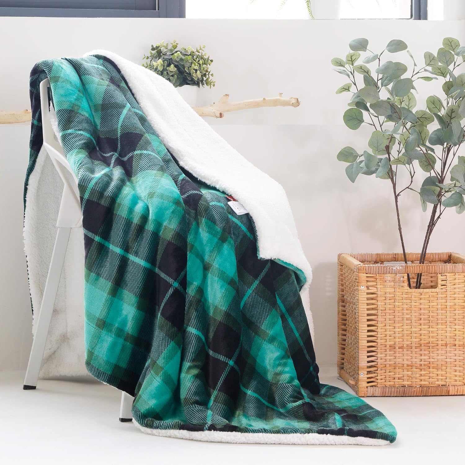 SOCHOW Sherpa Plaid Fleece Throw Blanket, Double-Sided Super Soft Luxurious Bedding Blanket 127cm×150cm, Green