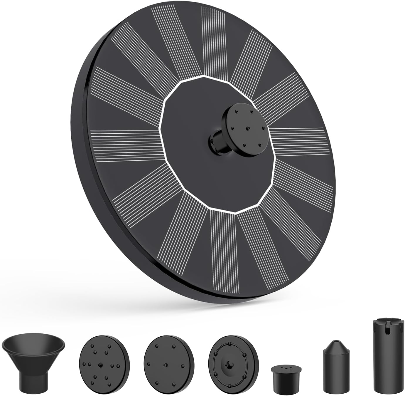 Solar Fountain Pump,1W Solar Water Fountain Pump Kit with 6 Nozzles for Garden Water Feature, Fountain, Pool, Bird Bath