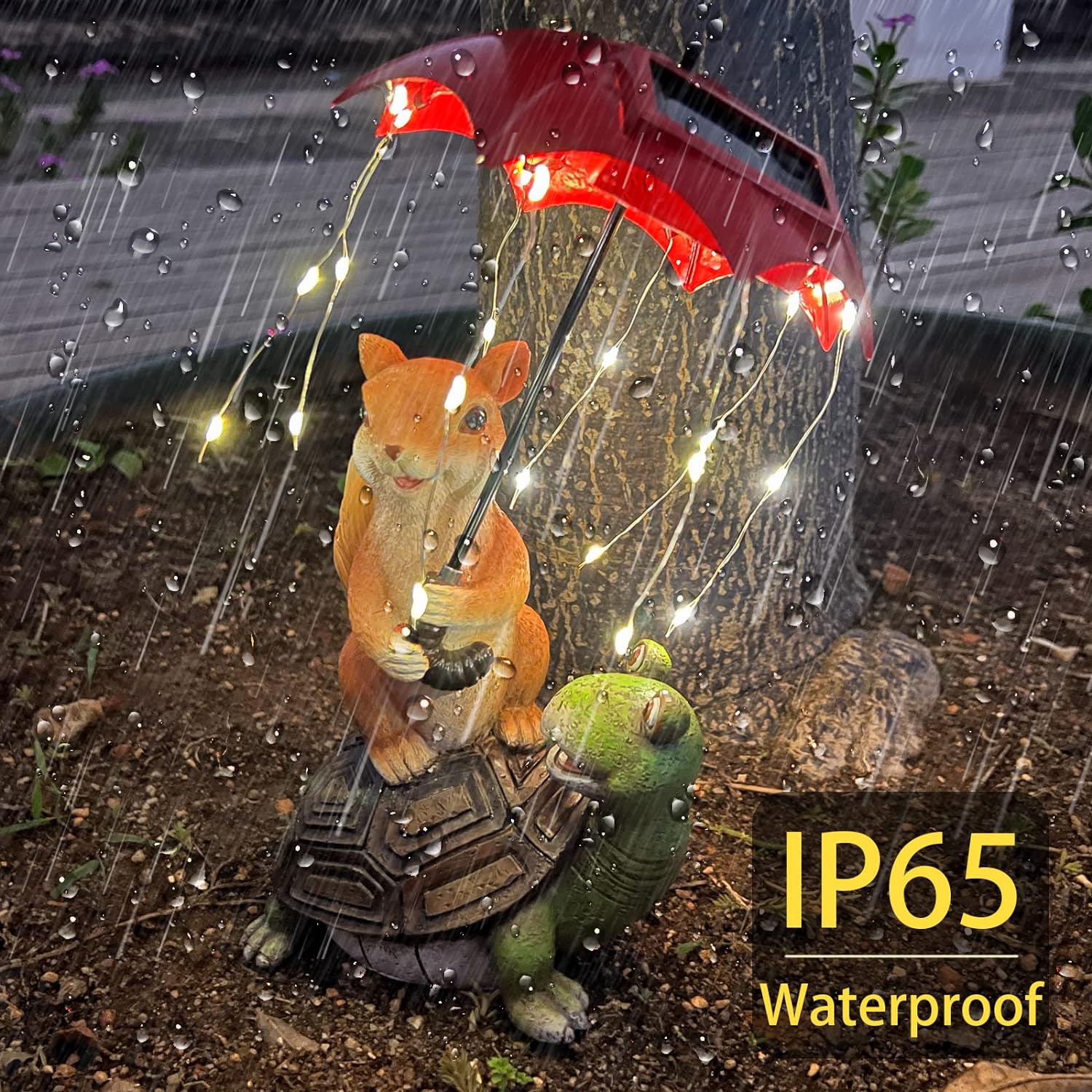 ☔【IP65 Waterproof】-The garden statues are IP65 waterproof, so they are durable enough to withstand different weather conditions, you can also keep the squirrel statues outdoors. Different weather, outdoor turtle statue lights will give you different visual enjoyment.