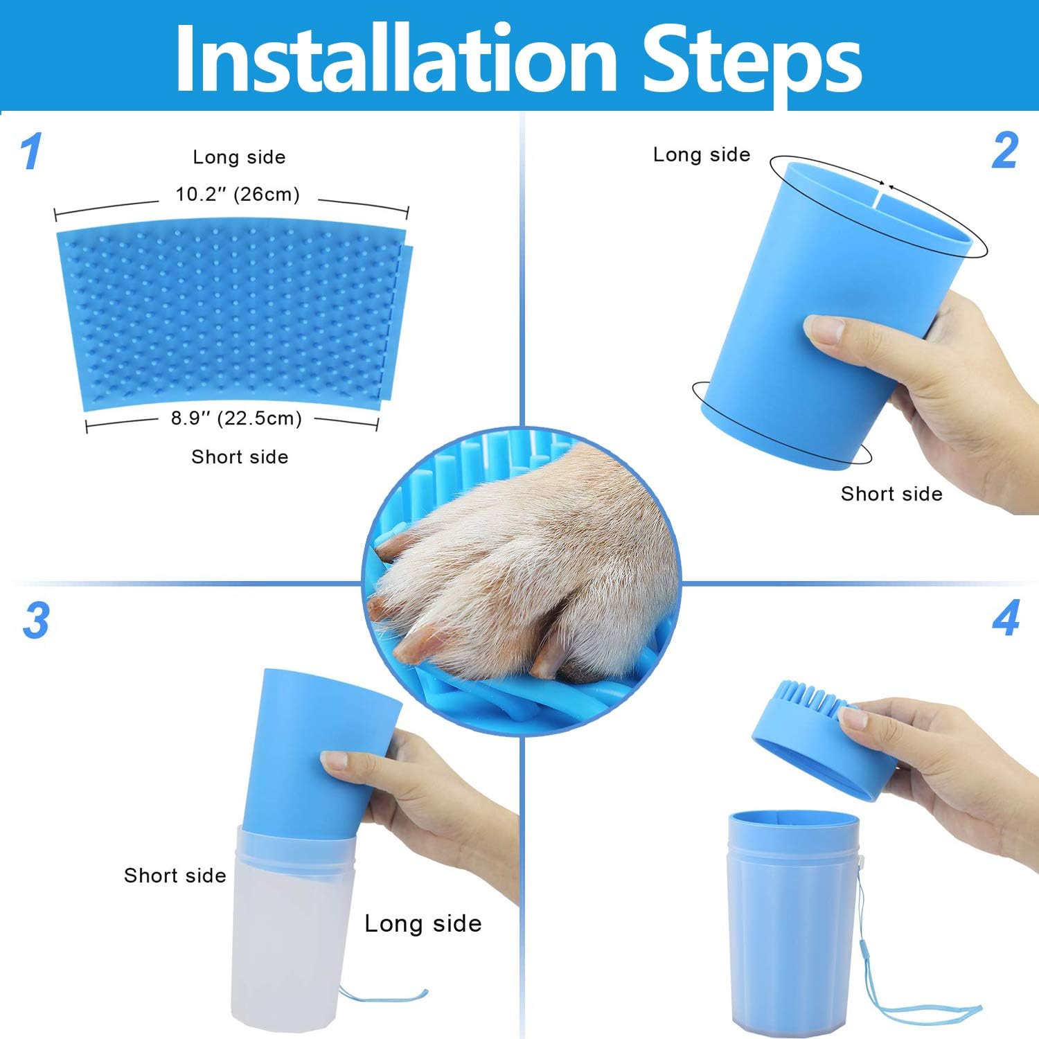 🌿360° All-Round Cleanner with no dead ends:Add some water to the cup, insert dog’s muddy paw, gentle and effective silicone brush,help remove dirt and mud from your dog’s paw and doesn’t injure your pet’s paws in the process.