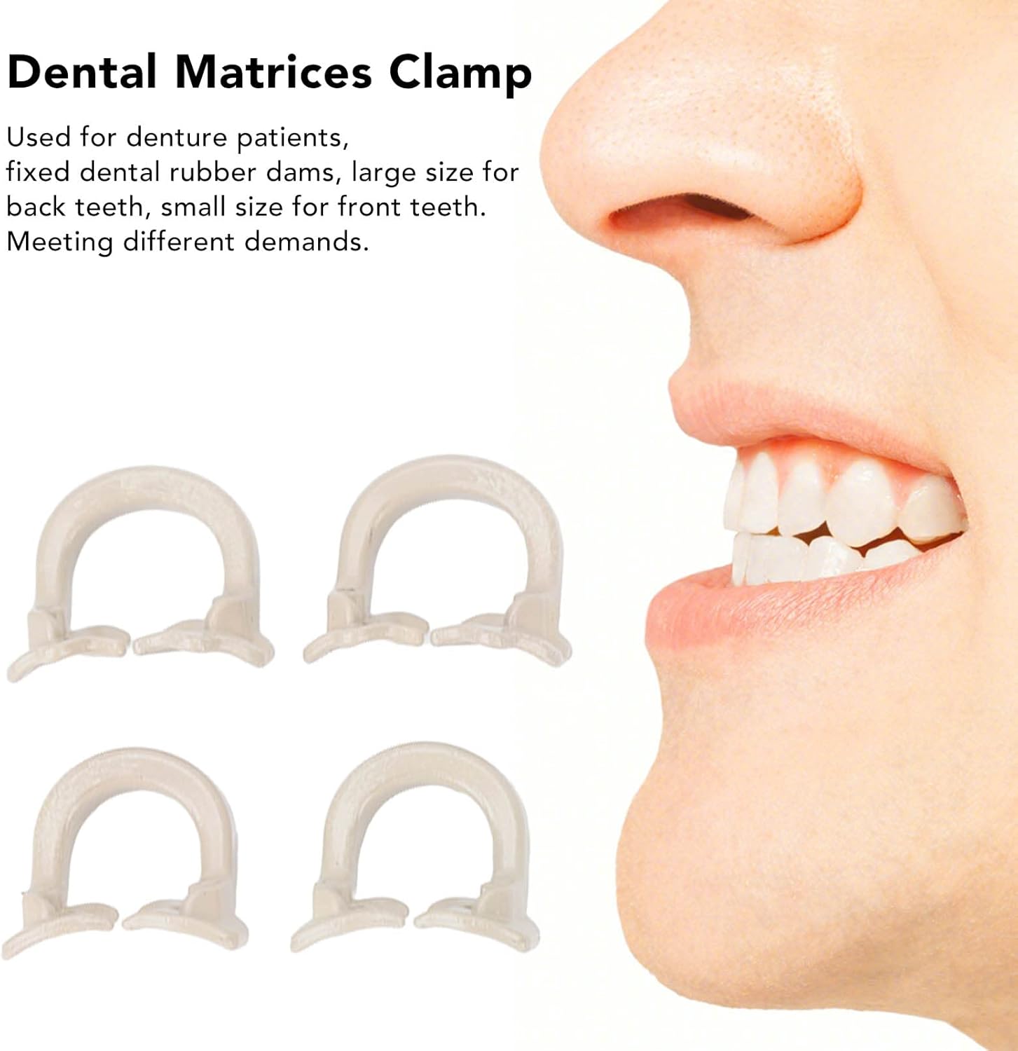 4pcs Set: Dental clamping rings are used for denture patients to help hold dental dams in place, large sizes for posterior teeth and small sizes for anterior teeth. Meet different needs.