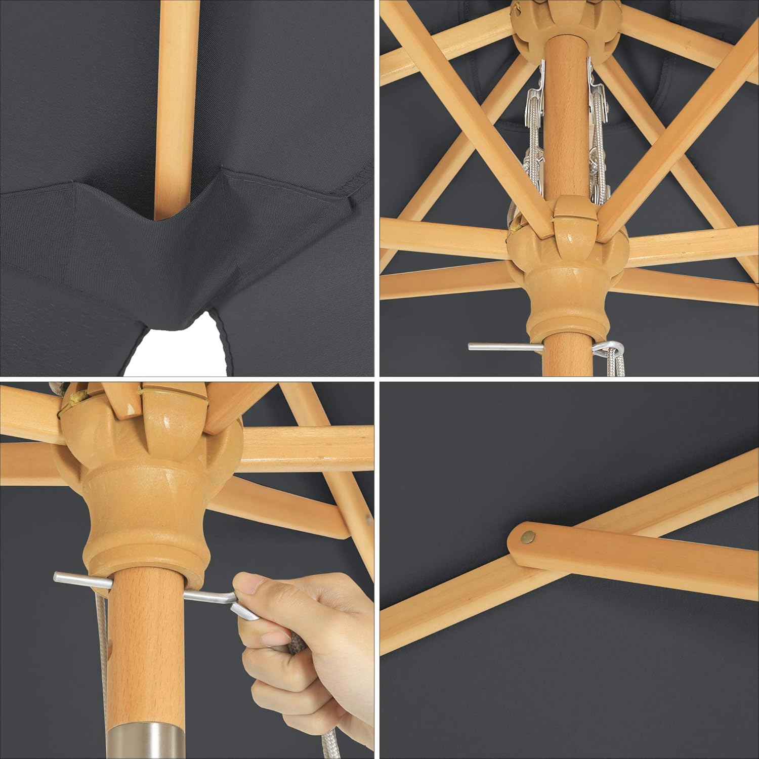 Strength-Meets-Beauty: The 2 parts of the beech wood pole are held tightly together by a sturdy zinc alloy joint; 6 durable hardwood ribs give the umbrella a steady support, while adding a fresh and natural touch to terrace