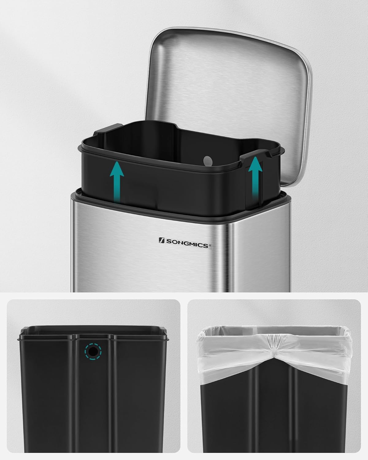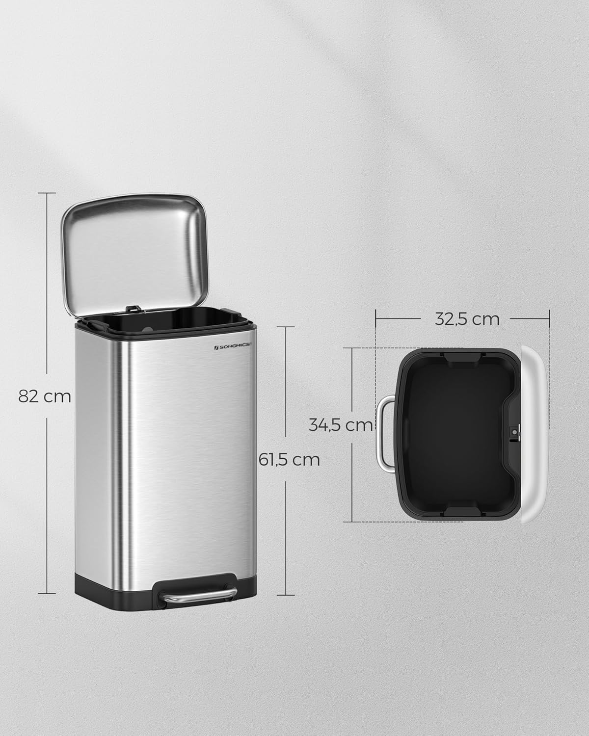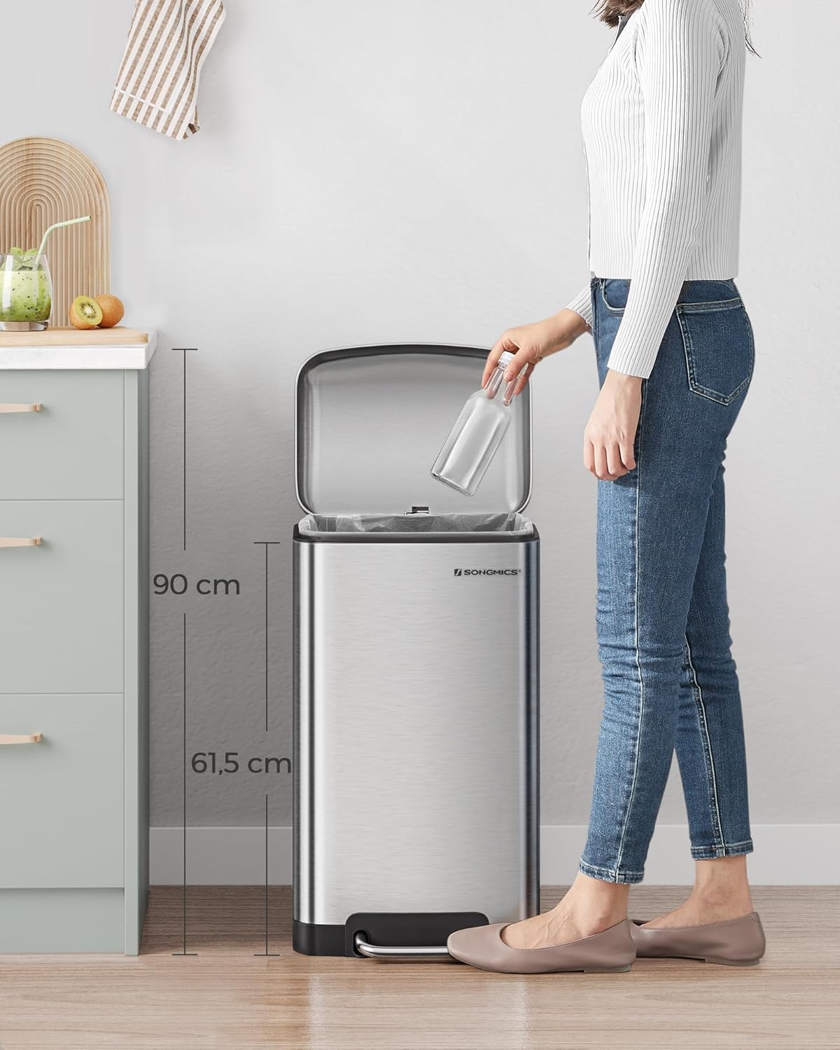 Be the first to review “SONGMICS Rubbish Bin, 30L Trash Can, Steel Pedal Bin, with Inner Bucket and Lid, Soft Closure, Airtight, for Kitchen, Living Room, Silver Colour LTB01L, Metallic” Cancel reply