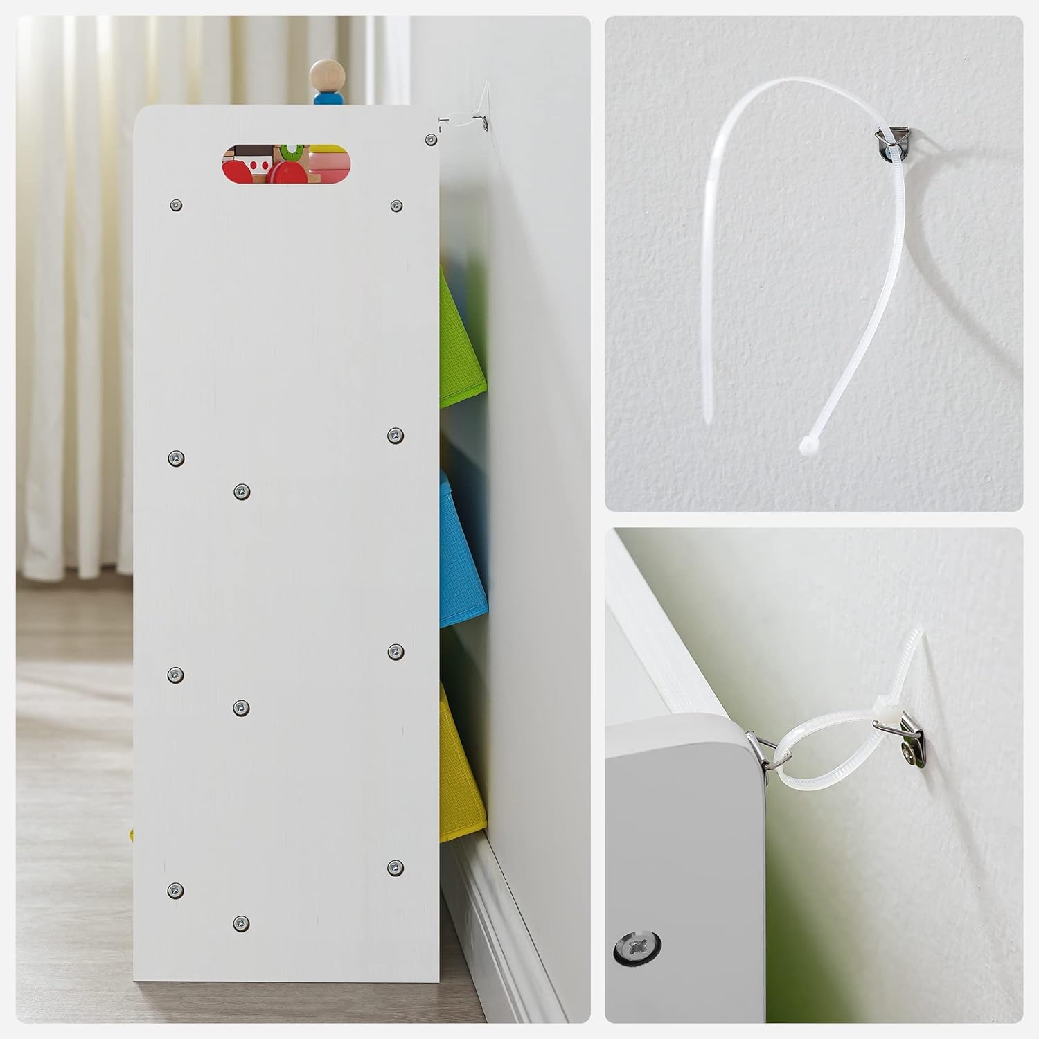 SONGMICS kids’ toy storage unit is a wonderful addition to any playroom and is a fun way to add extra storage or display your little one’s favorite toys! It has a top shelf and 9 plastic storage containers which are child-sized so that they can learn to retrieve and put away their books, toys and games by themselves. Made of MDF, the toy organiser is robust, sturdy and lightweight. The anti-toppling straps included will keep the standing organiser stable and protect your kids from bodily injury.