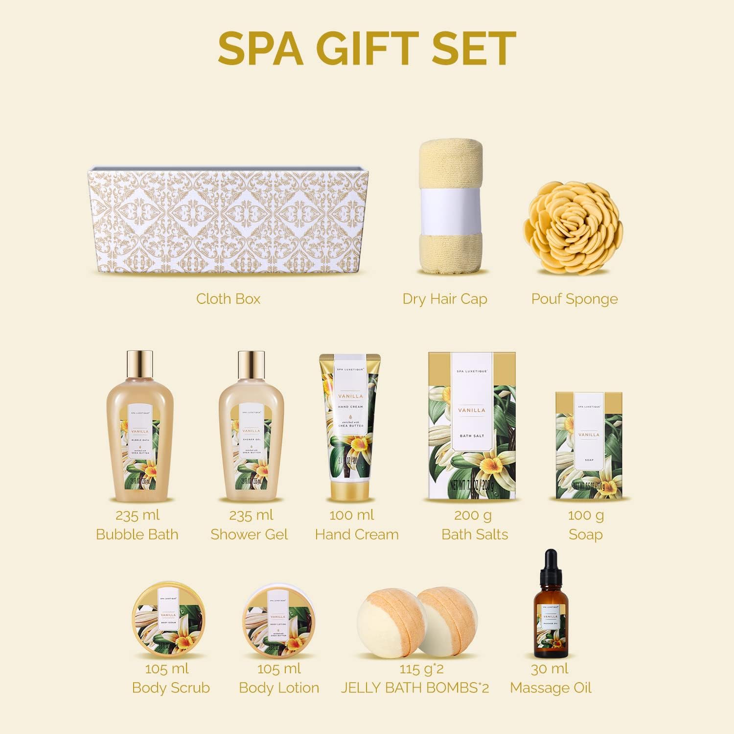 Spa Luxetique Spa Gift Set,12pcs Vanilla Shower Set, Pamper Gifts for Women, Bath Gift Set with Body Lotion, Bath Bomb, Bubble Bath, Bath Sets for Women Gifts Birthday Christmas Gift Sets