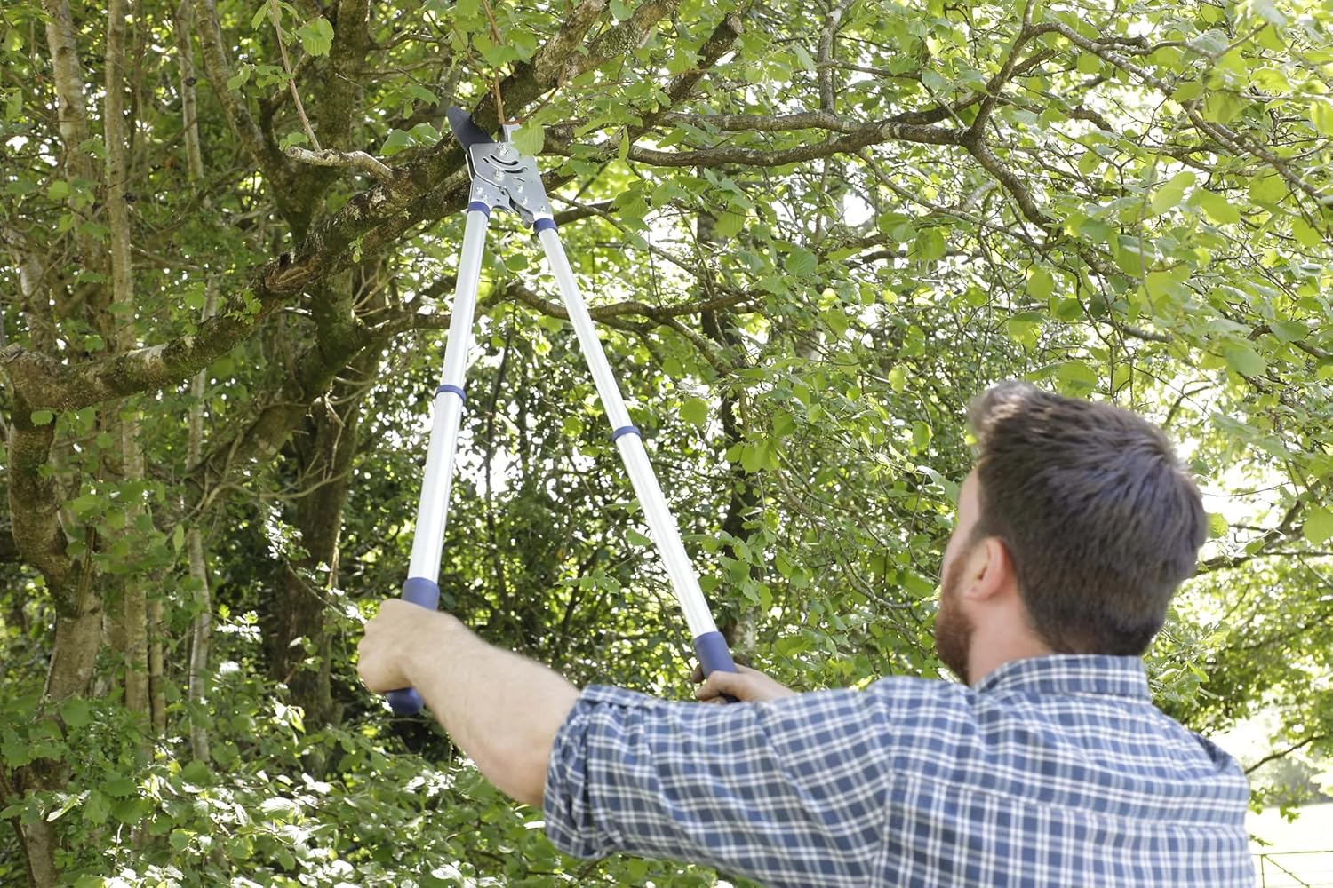 The Spear & Jackson Razorsharp Heavy Duty Telescopic Ratchet Anvil Lopper is ideal for cutting thicker and harder branches and easily handles a branch 50mm in diameter. These loppers feature a ratchet action which provides a mechanical advantage by advancing the spring loaded cutting blade towards the anvil blade in short steps to complete the cut with a minimum of effort.