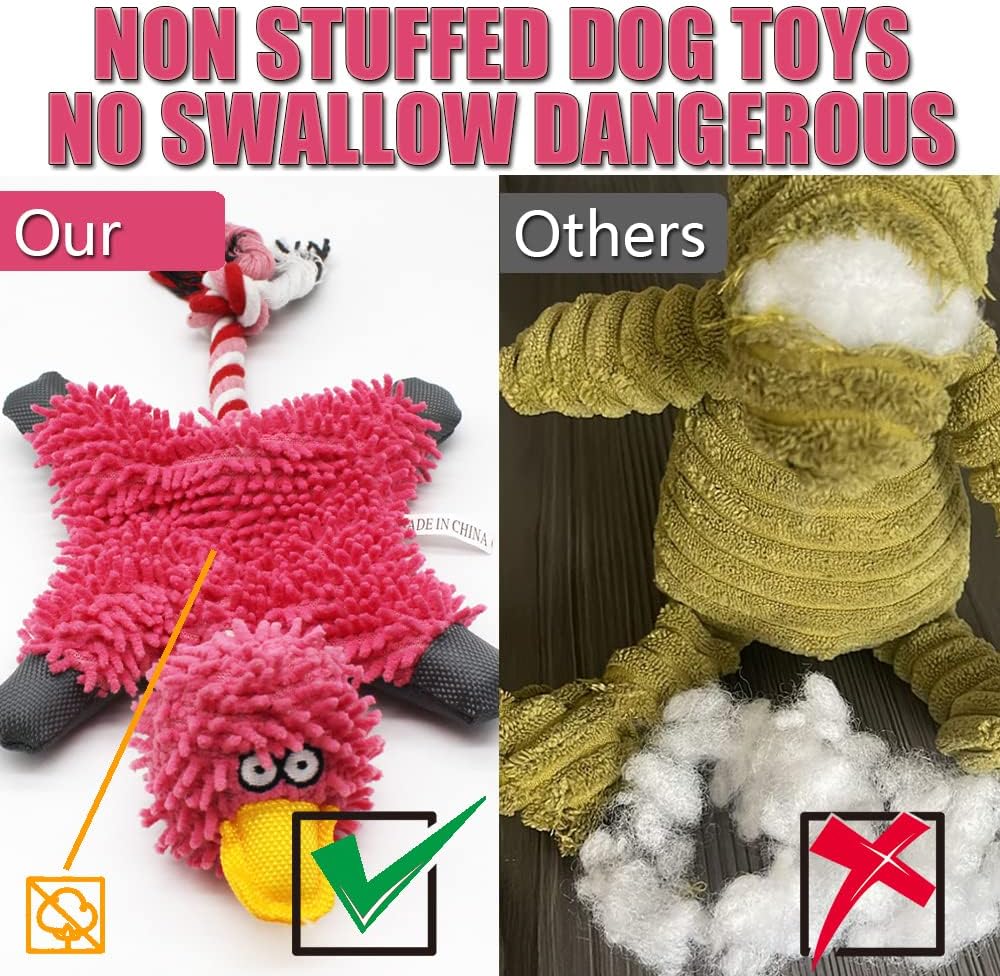 NO STUFFING DOG TOYS – 100% stuffing free dog toy design, which means no dangerous stuffing hidden in our toys, it is very safe your puppy to chew and play, no worry about swallow or choke on and no clean up for you.