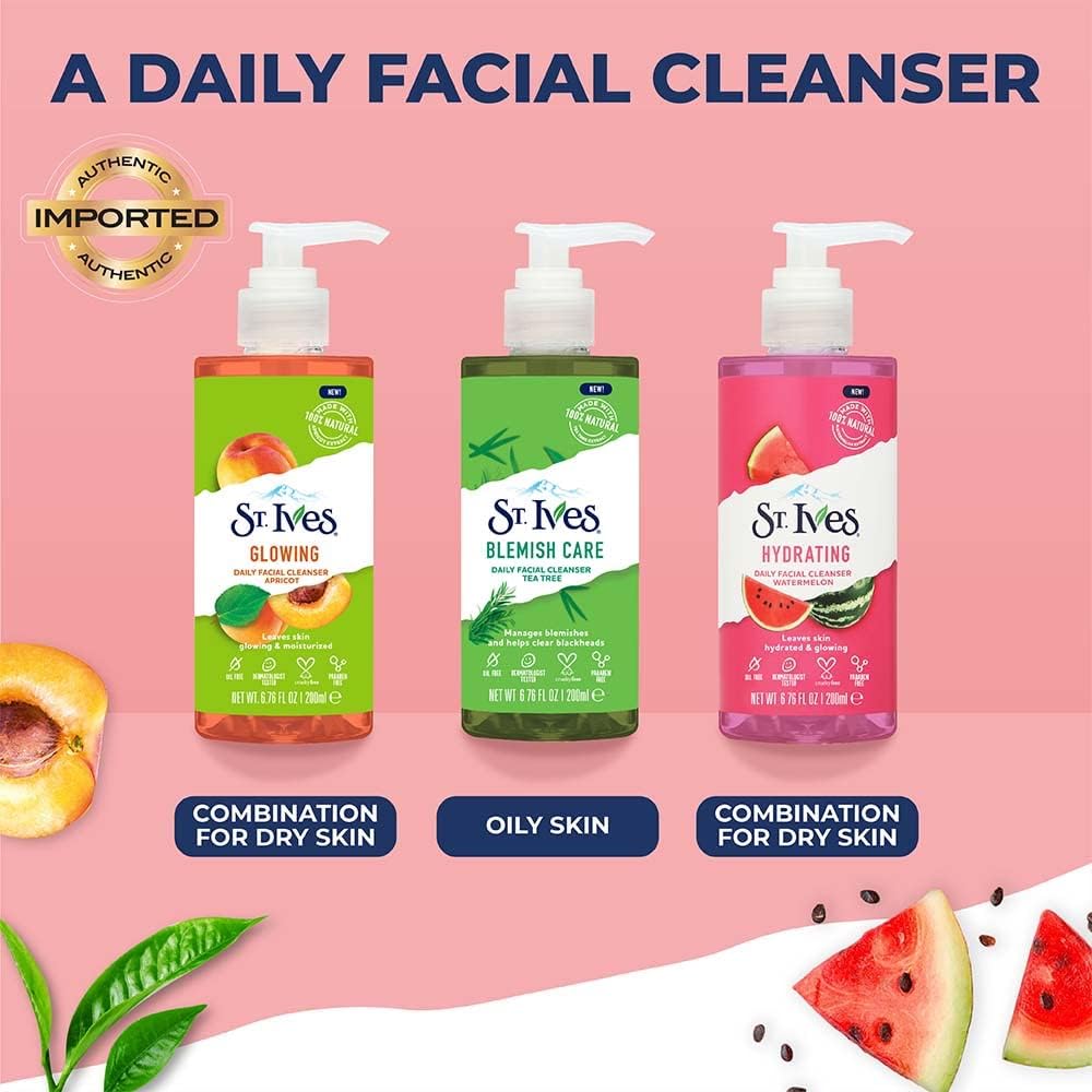 St. Ives Hydrating Daily Face Cleanser Natural Watermelon Extract to leave Skin Refreshed and Glowing 200ml