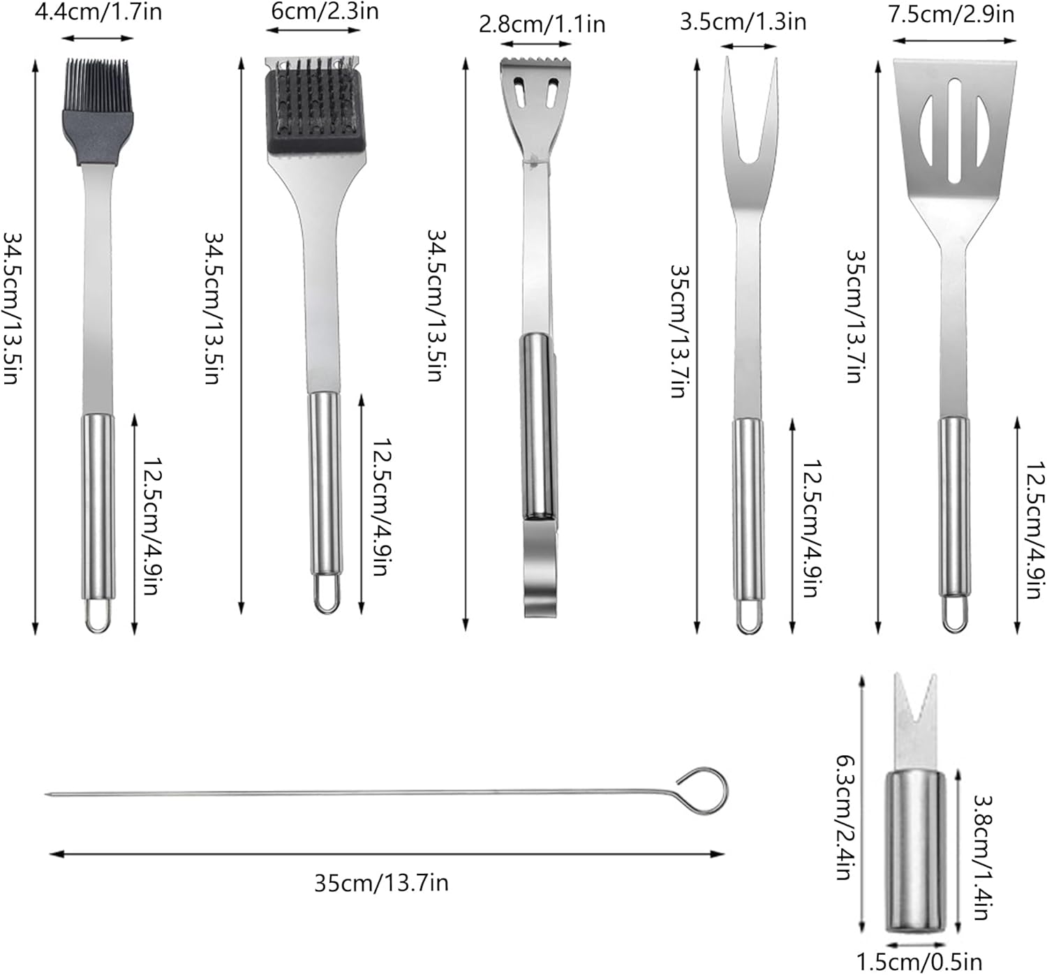 Combination tools include and size: baking clip (34.2 * 2.8cm) + baking fork (35 * 3.5cm) + spatula (35 * 7.5cm)