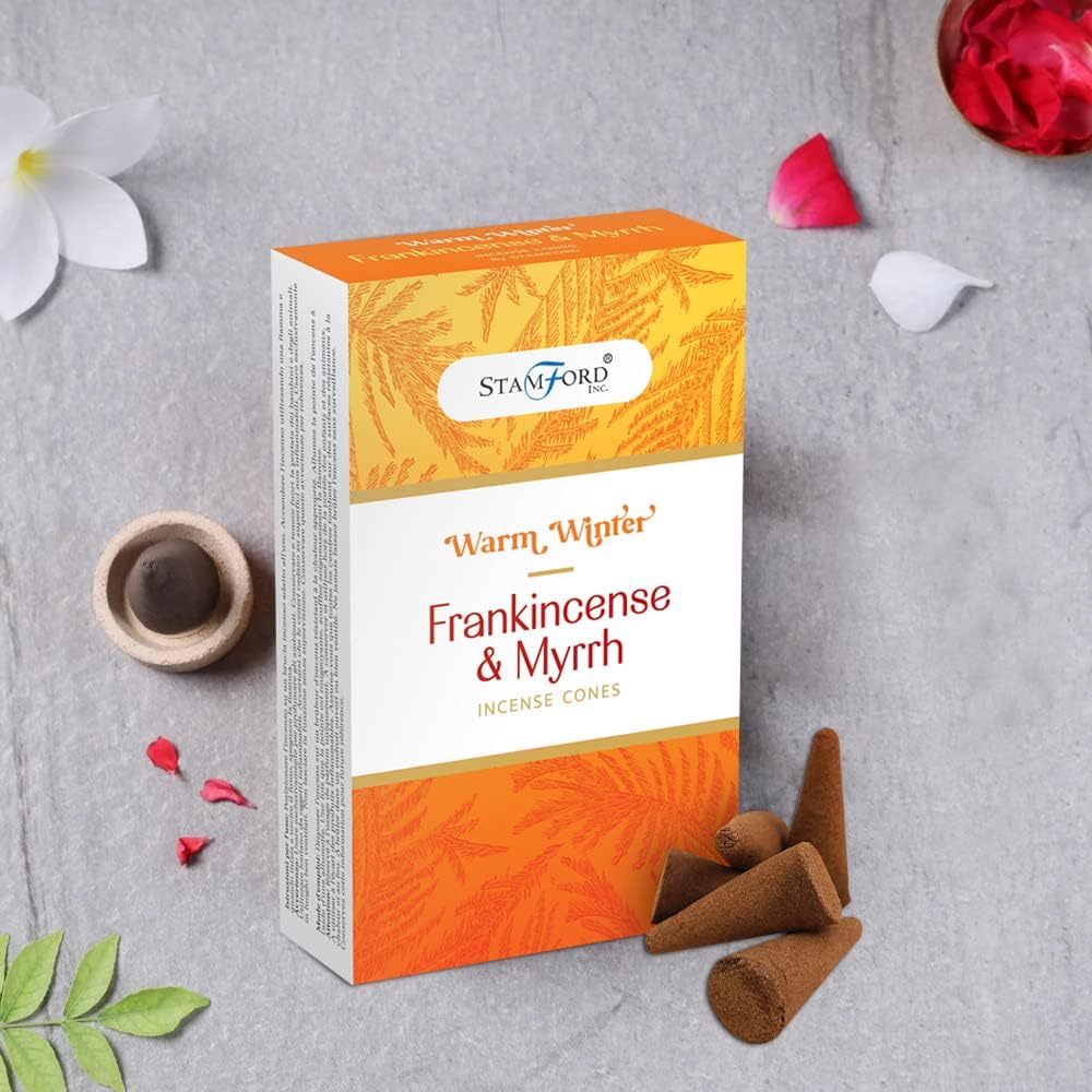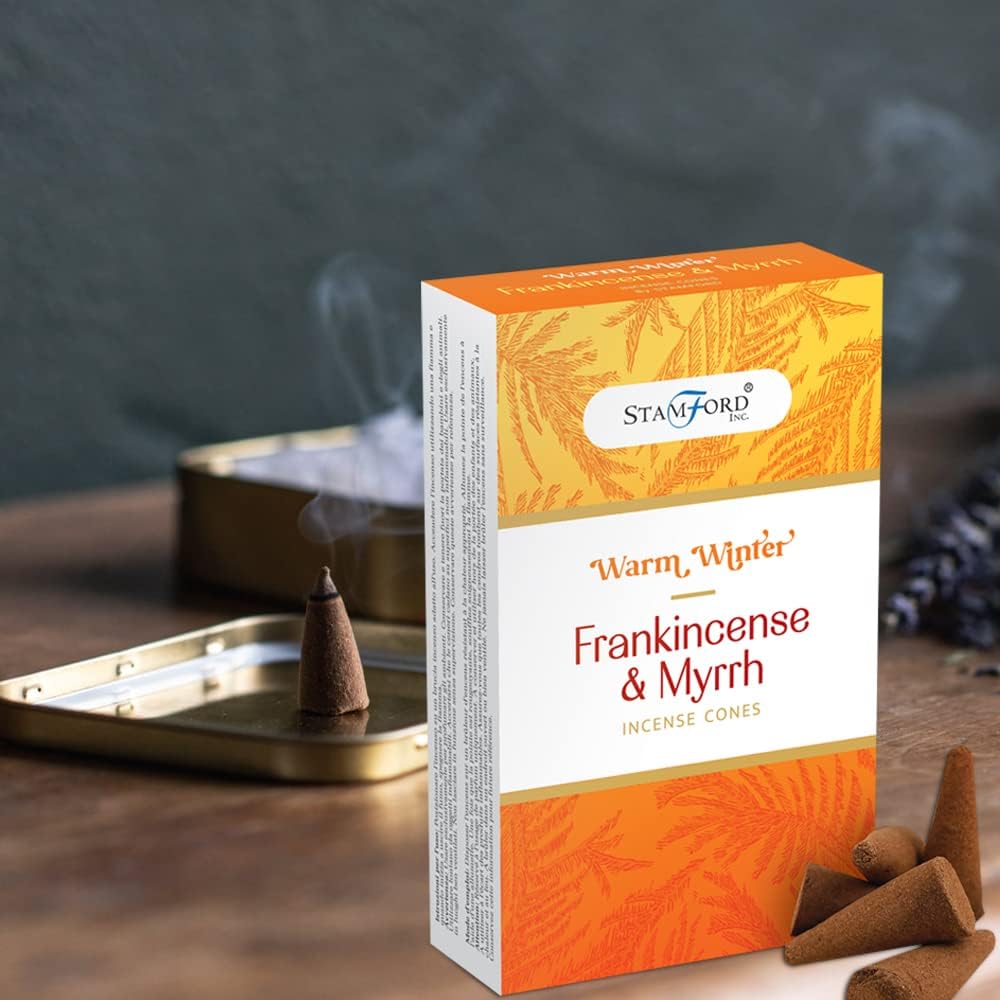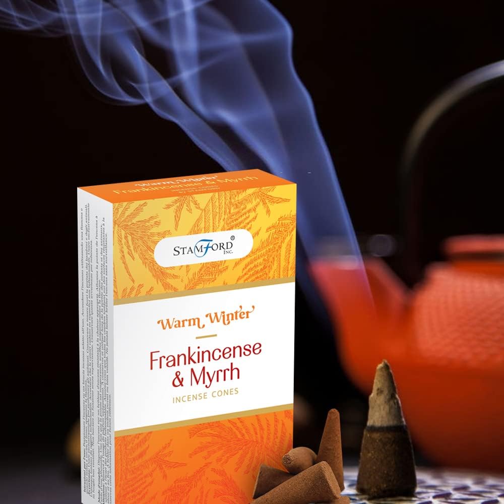 Stamford Premium Aromatherapy Incense Cones – Relaxing, Stress Relief, Meditation,Refreshing Incense Cones Set with Hot Summer Night and Winter Warmth Range (Winter Warmth Cones, Frankincense & Myrrh)