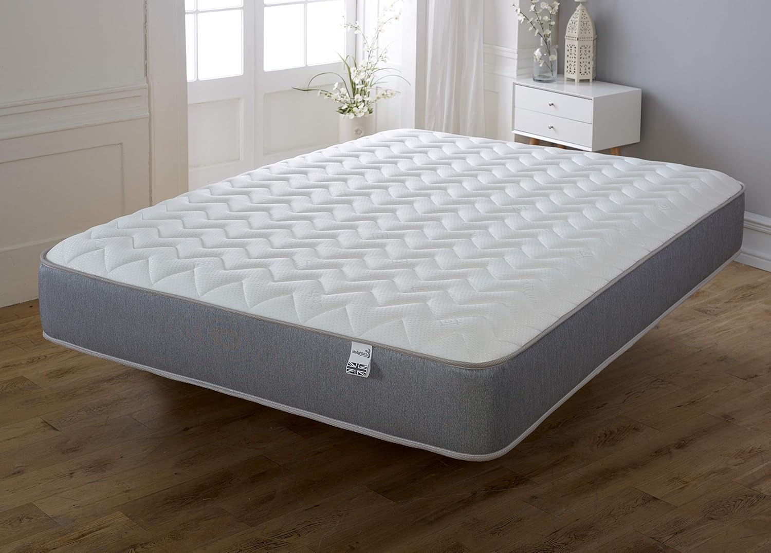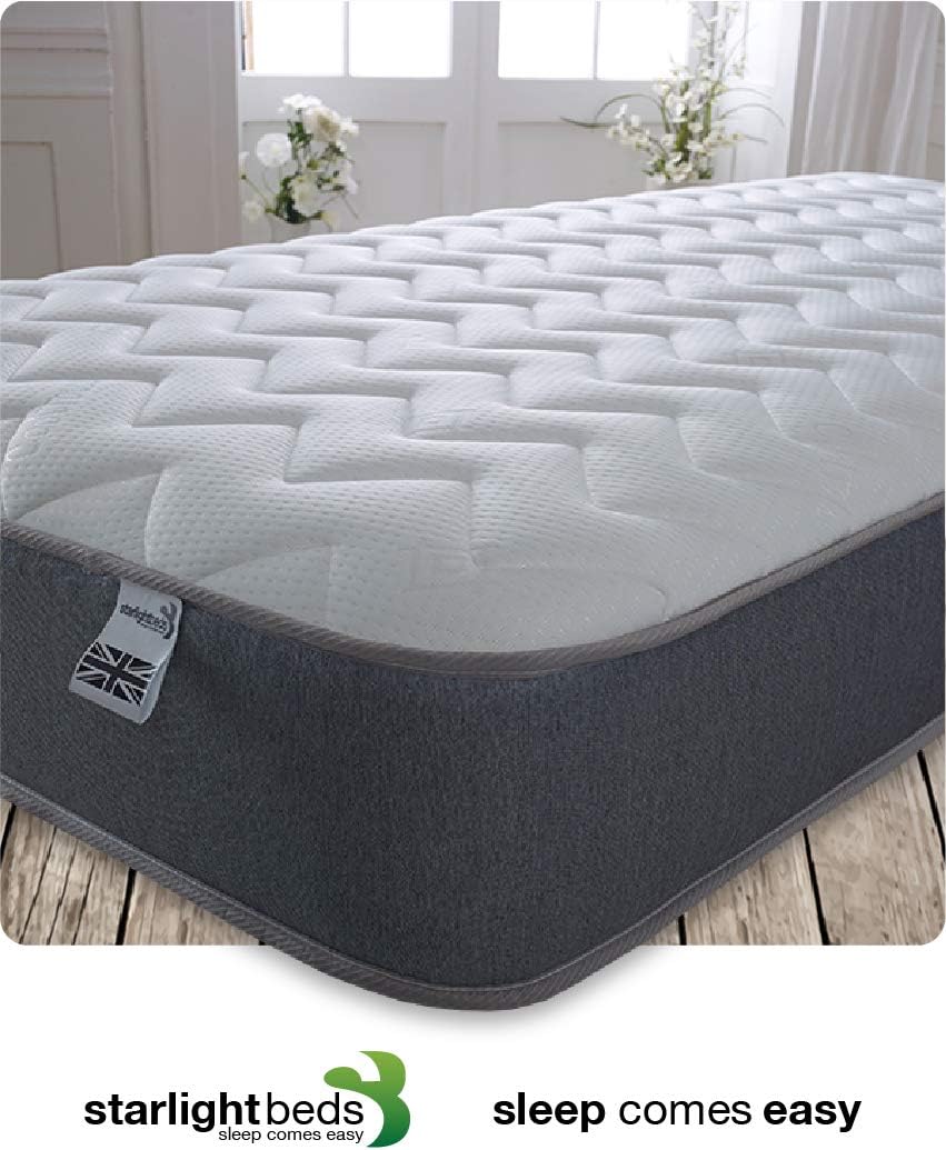 Starlight Beds Essentials Zig Zag Double Mattress with Springs and Memory Foam. 7.5 Inch Budget Mattress. Grey, Soft Firmness (135x190x19cm)