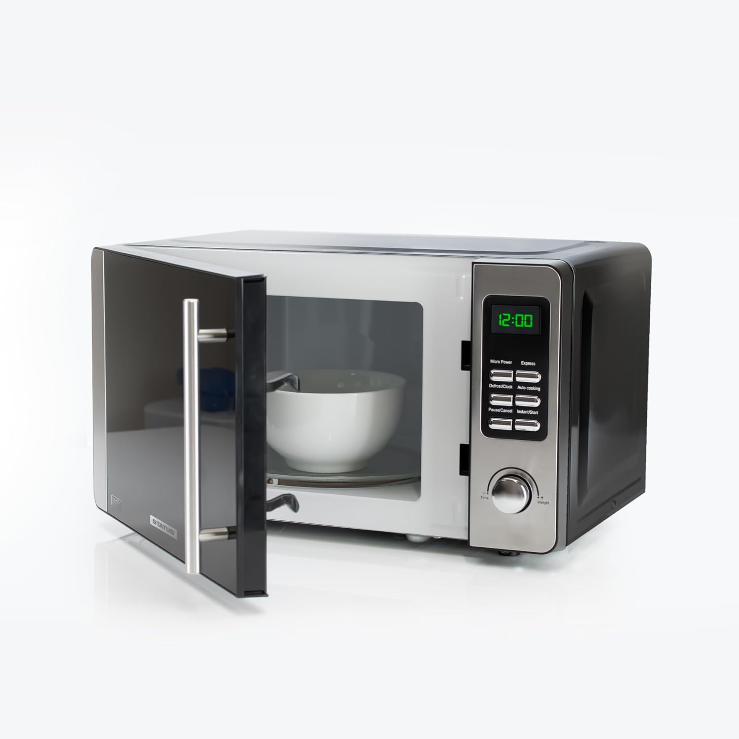 Modern and Stylish Design: This microwave offers a contemporary design with stainless steel accents and a mirrored door finish, enhancing the aesthetic appeal of your kitchen.