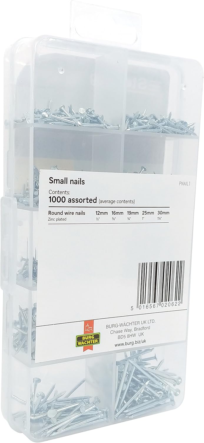 The Sterling handy hardware small nails packs come in a variety of the most popular sizes and are visible without opening the pack. These are in a universal sized handy box which is reusable and has a lid with fastening action making them easy to store and can be stacked, neat and tidy. Sterling products are equal to the best in the market. Sterling is a brand of burger-watcher one of the largest manufactures of security products in the world. Burger-watcher has a proud heritage of over 120 years and are recognised for quality standards across our extensive range of locks, padlocks, Safes, post boxes and access control solutions.