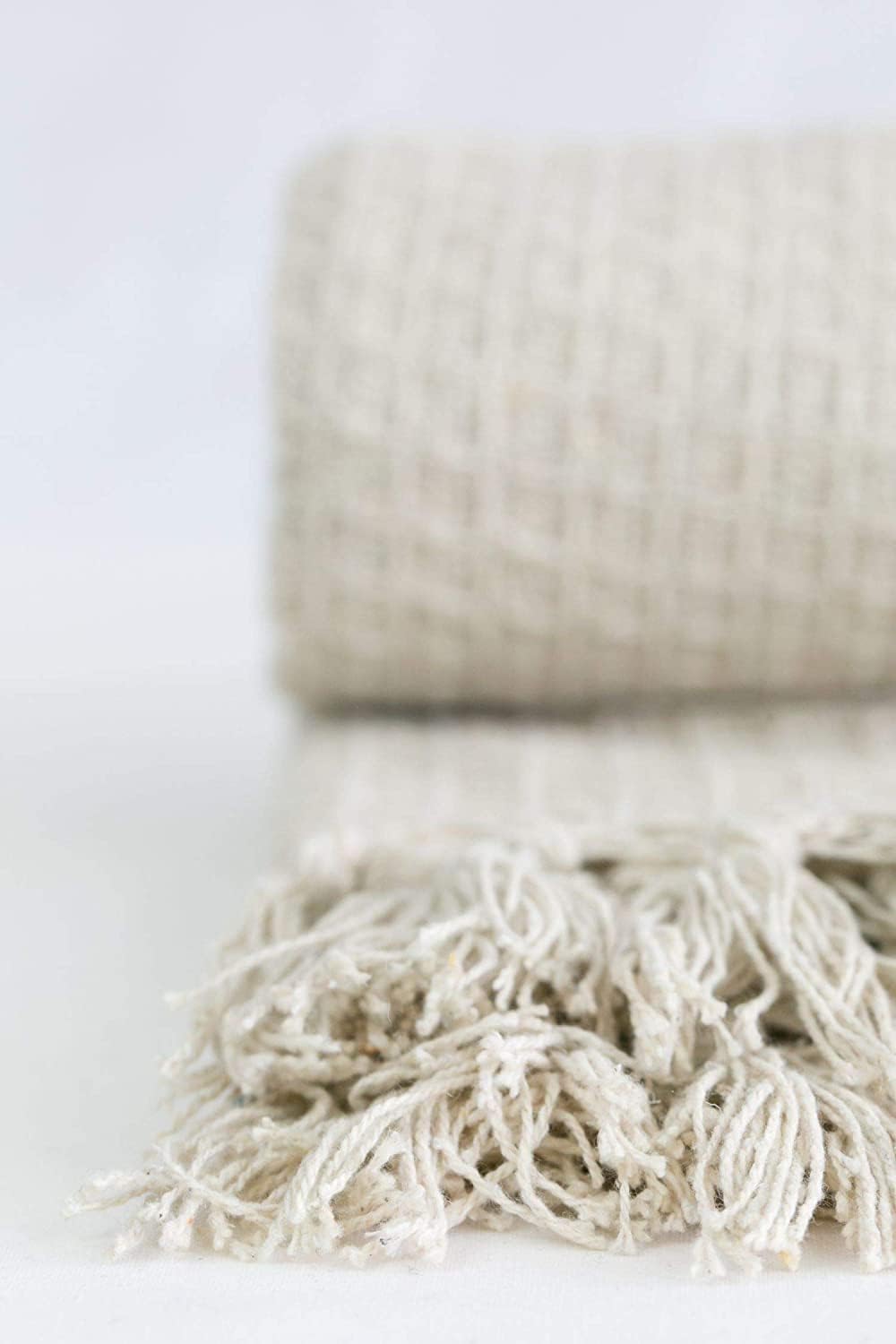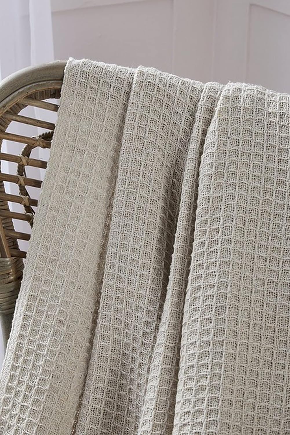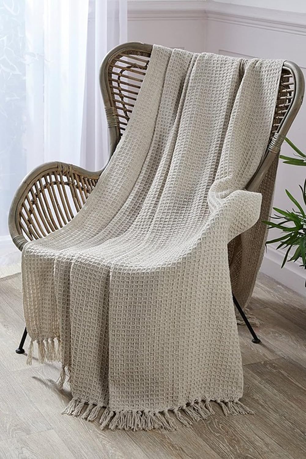 Stylemybedroom 100% Cotton Woven Honeycomb Waffle Sofa/Bed Throw (Beige, 127cm x 152cm (50″ x 60″))