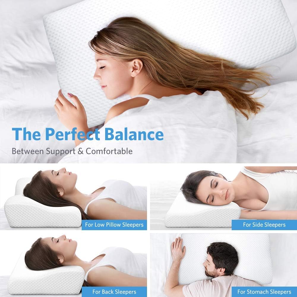 Away From Neck and Shoulder Pain — This cervical pillow is made of better memory foam with moderate hardness to ensure a comfortable support for head, neck, shoulder, and back while sleeping, minimizing the neck pain and shoulder stiffness. The memory foam with a temperature sensing function that makes the pillow fit your neck perfectly and helps release breathing airways to reduce snoring.Better Sleep — We love and trust our memory foam bed pillow, and we know you will too. That’s why we’re happy to let you try it out, wake up to a pain-free morning. Add this comfort memory bed pillow, suitable for you. It helps everyone relax the cervical spine and bring deep sleep have a wonderful night!Premium Memory Foam — This neck support pillow is made of premium memory foam will not lose shape or firmness over time easily, and while comfortable and soft they are also dense enough to offer unparalleled and balanced support and cushion. It is covered with breathable inner cover and outer cotton-rich pillow cover. The inner cover keeps the foam from getting dirt, dust and stains. Also, the breathable outer cover is with a zipper, it is easy to get it out and wash.