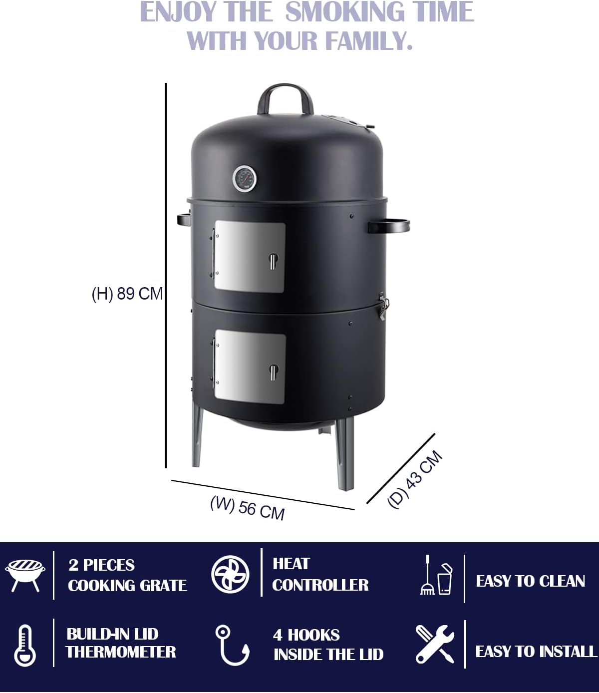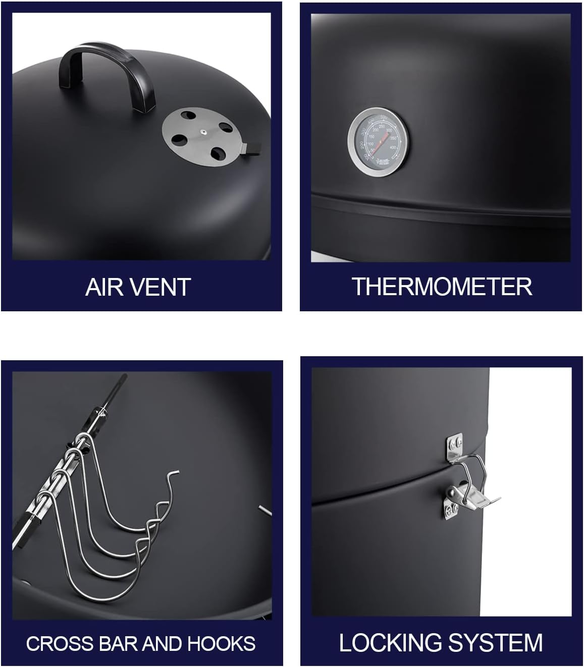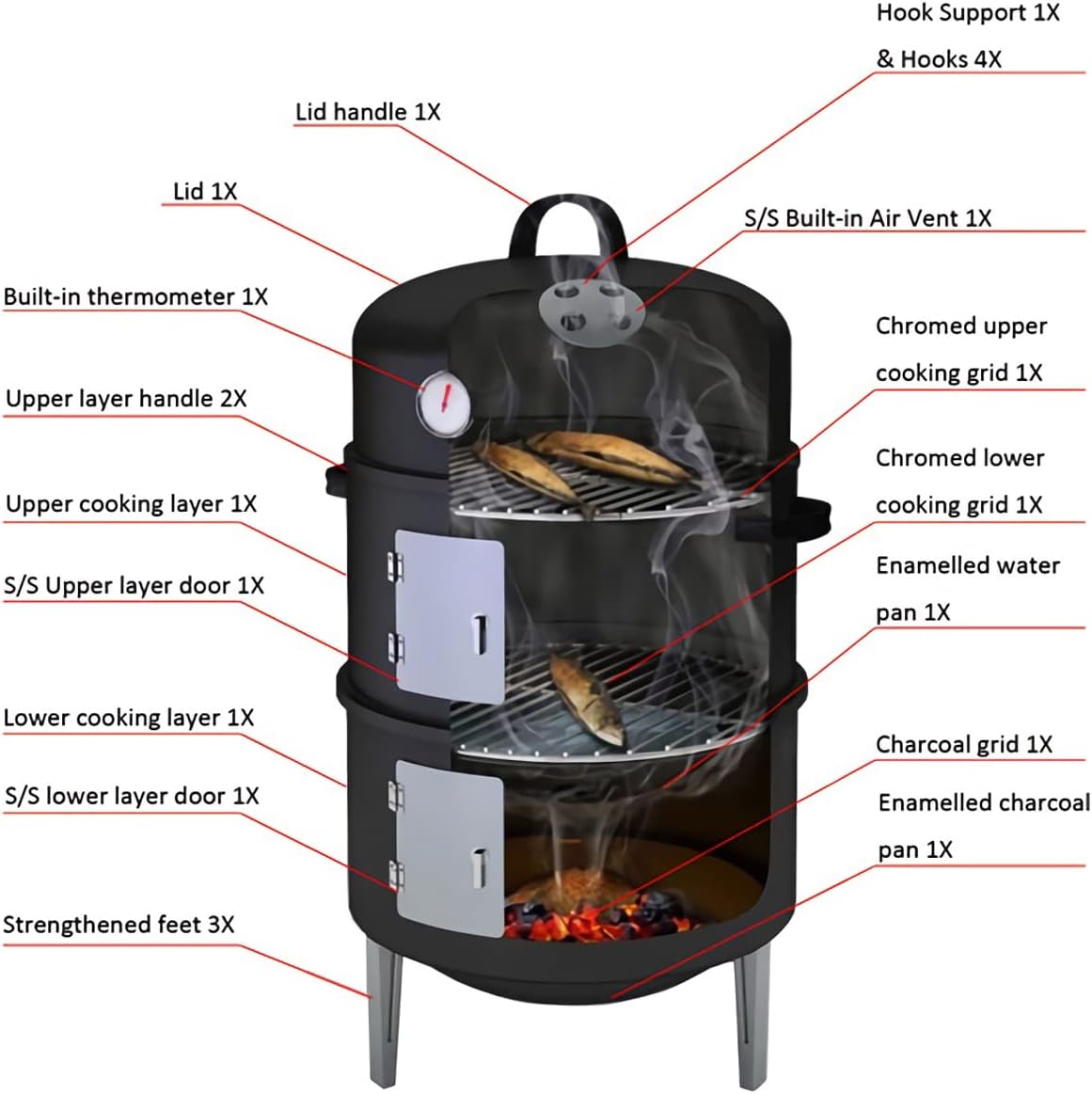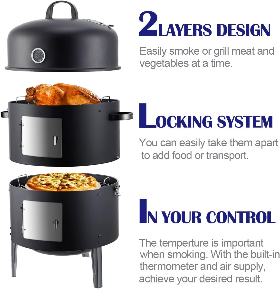 Multifunctional Smoking is a popular method that allows food to be preserved longer it can be used for cold or hot smoking. Can be used in multiple ways smokebarbecuesteambakestewroast offers tremendous flexibility. The SUNLIFER charcoal round grill can also be used as a fireplace small charcoal grill singlelayer smoker grills & smoker at the same time.