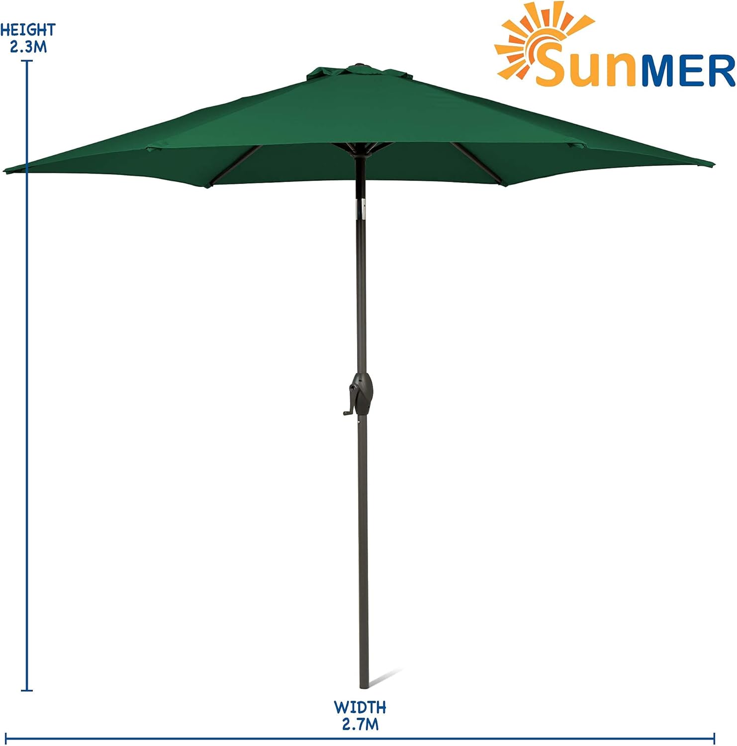SUNMER 2.7M Parasol Garden Umbrella Sun Shading | Water Repellent Polyester 180 g/m² (UV 30+)| Easy to Open and Close Crank Mechanism | Pole Width ø 38 mm (Excl. Base)
