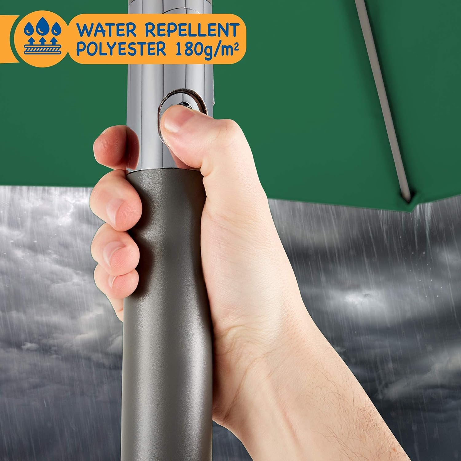 This SUNMER 2.7M Green Parasol is perfect for blocking out the suns rays on those hotter days. It is easy to open and close with the crank and also has a push button tilt mechanism that allows you to adjust the angle of the canopy.