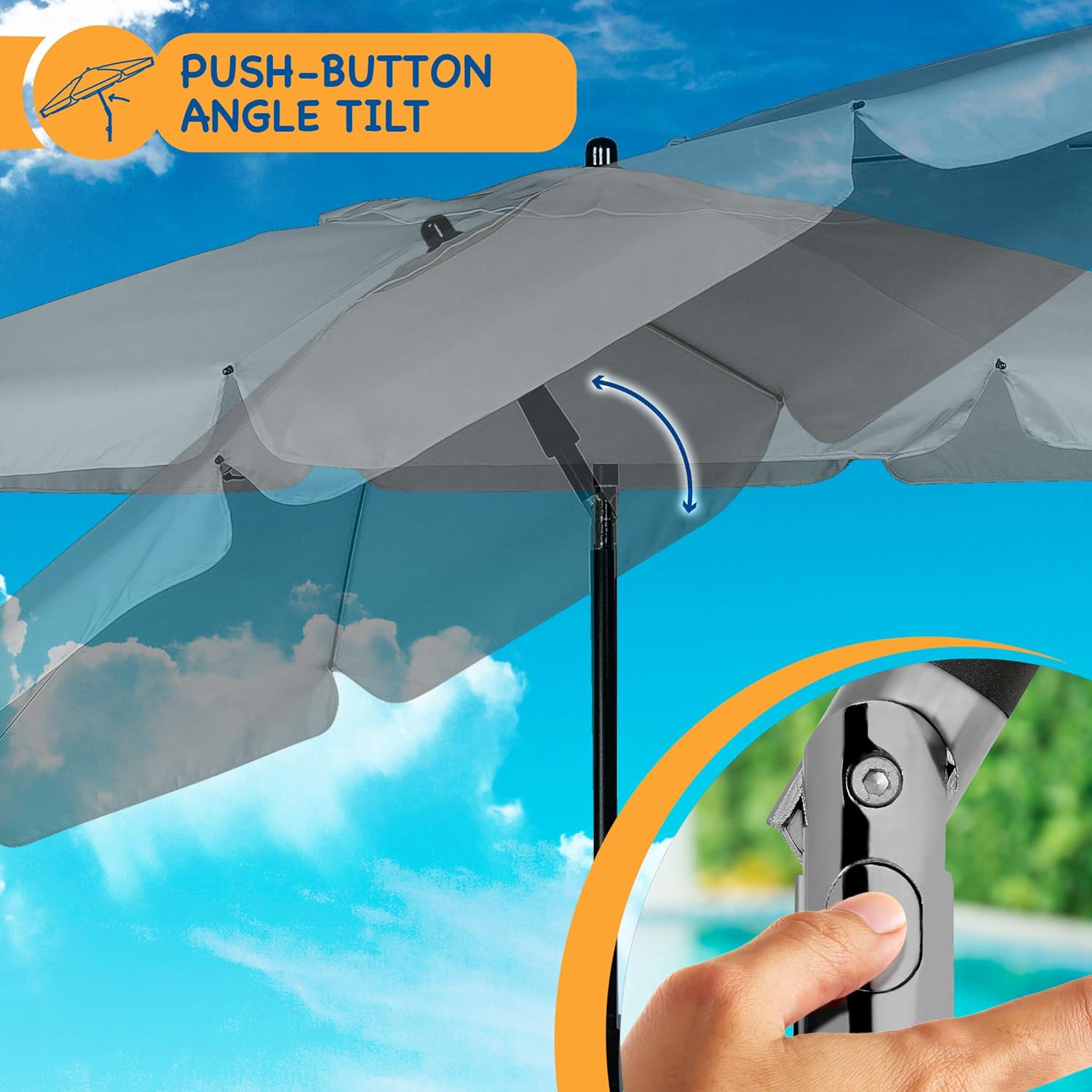 This SUNMER 2M Grey Parasol is perfect for blocking out the suns rays on those hotter days. It is easy to open and close and also has a tilt mechanism that allows you to adjust the angle of the canopy.